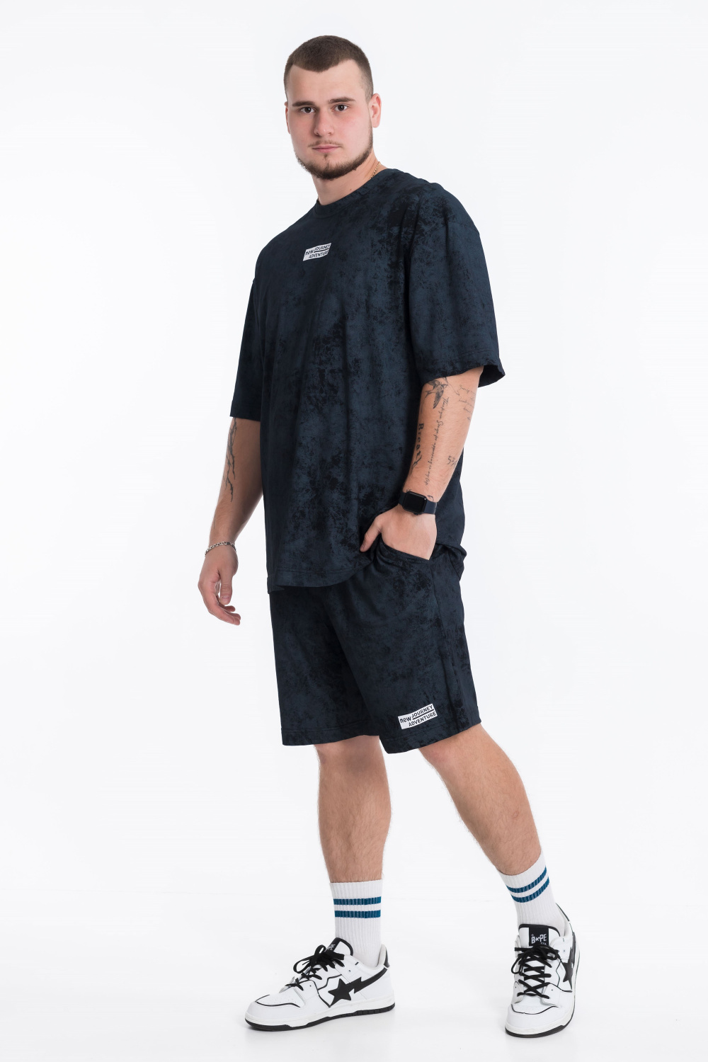 Мужской костюм — отличный выбор для повседневной носки. Он состоит из футболки и шорт, выполненных из качественного хлопкового полотна однотонного черного цвета, что обеспечивает комфорт и удобство в носке.
