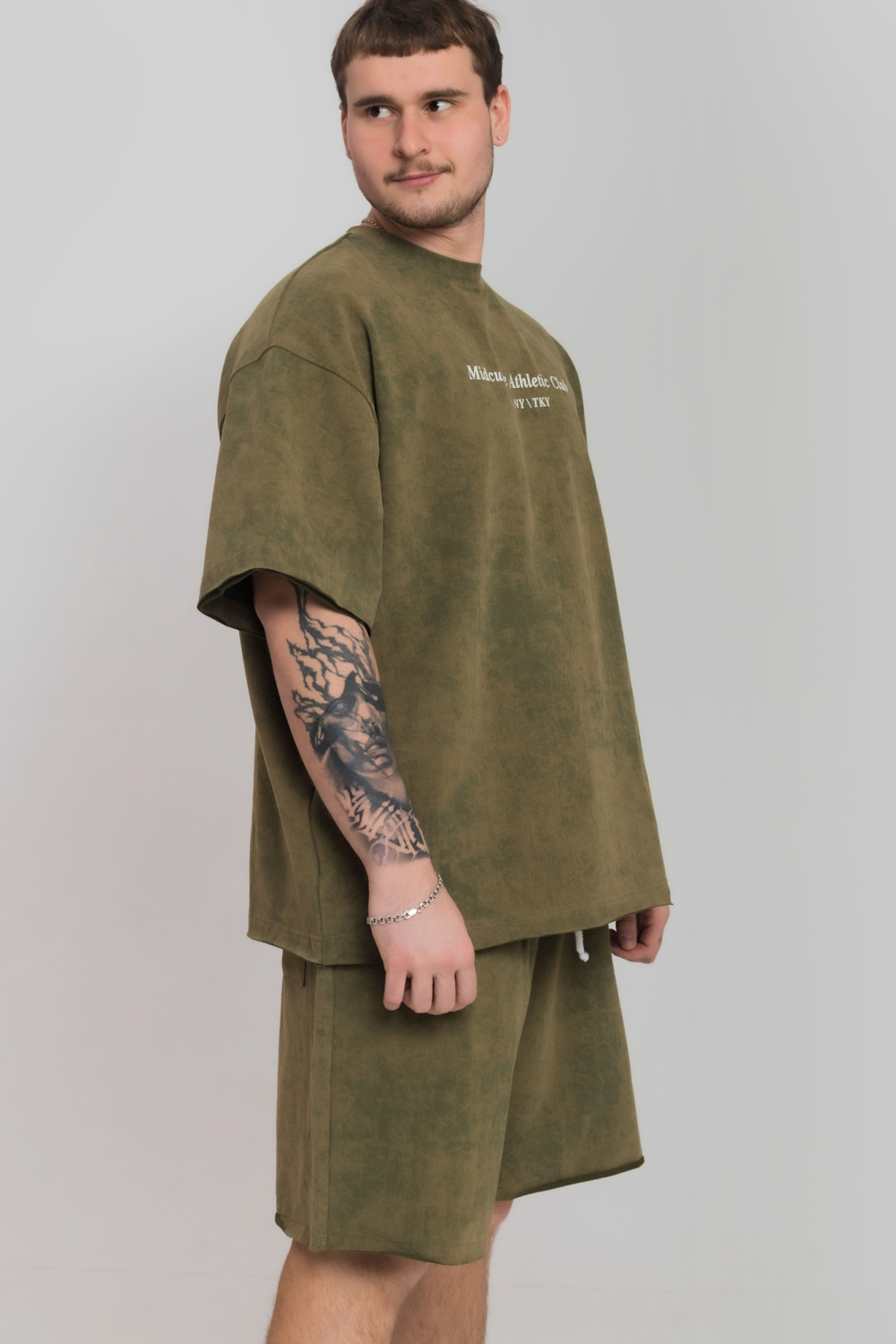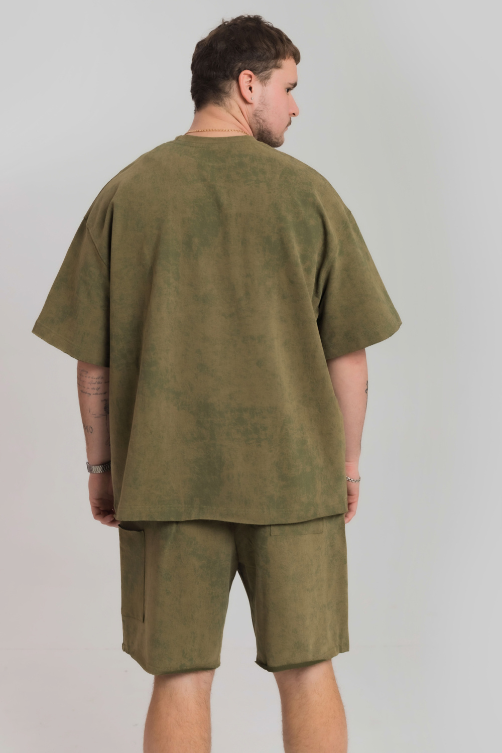 шорт необработан. Футболка с коротким рукавом легкий оверсайз.