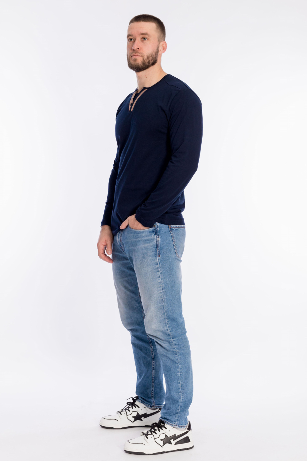 Мужская футболка с длинным рукавом из однотонной кулирки - 100% хлопок.