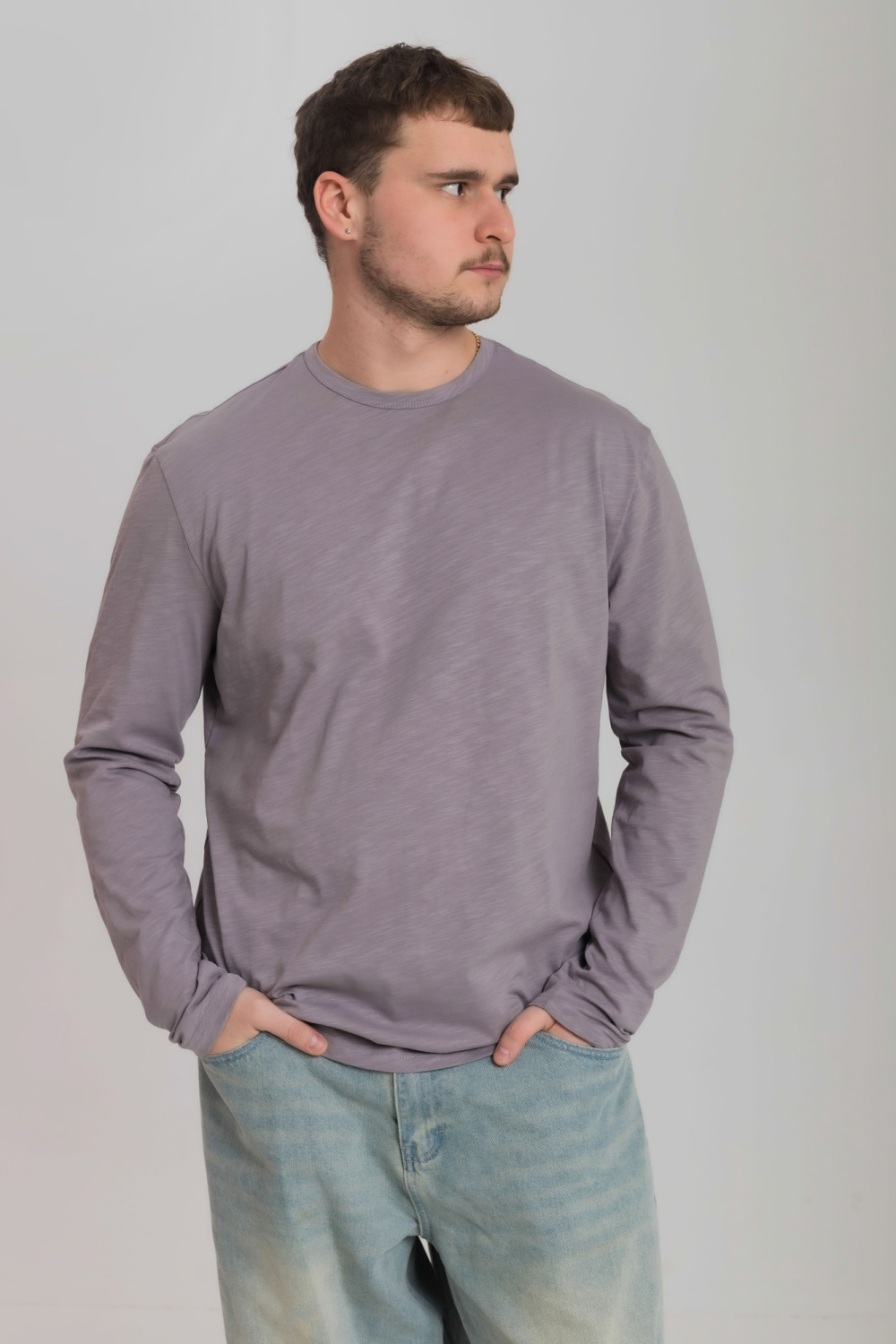 Лонгслив из однотонной кулирки Фламли. Горловина
