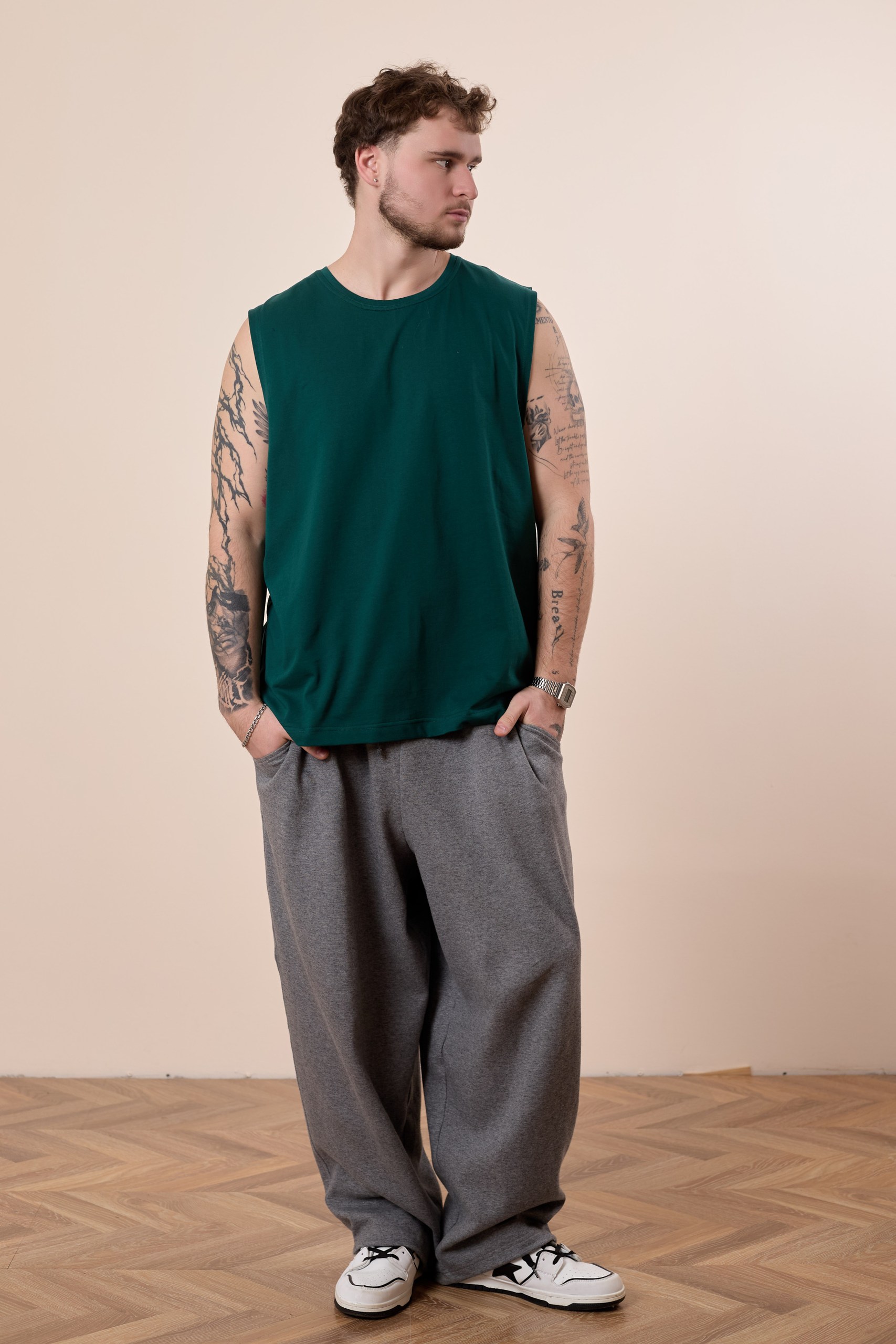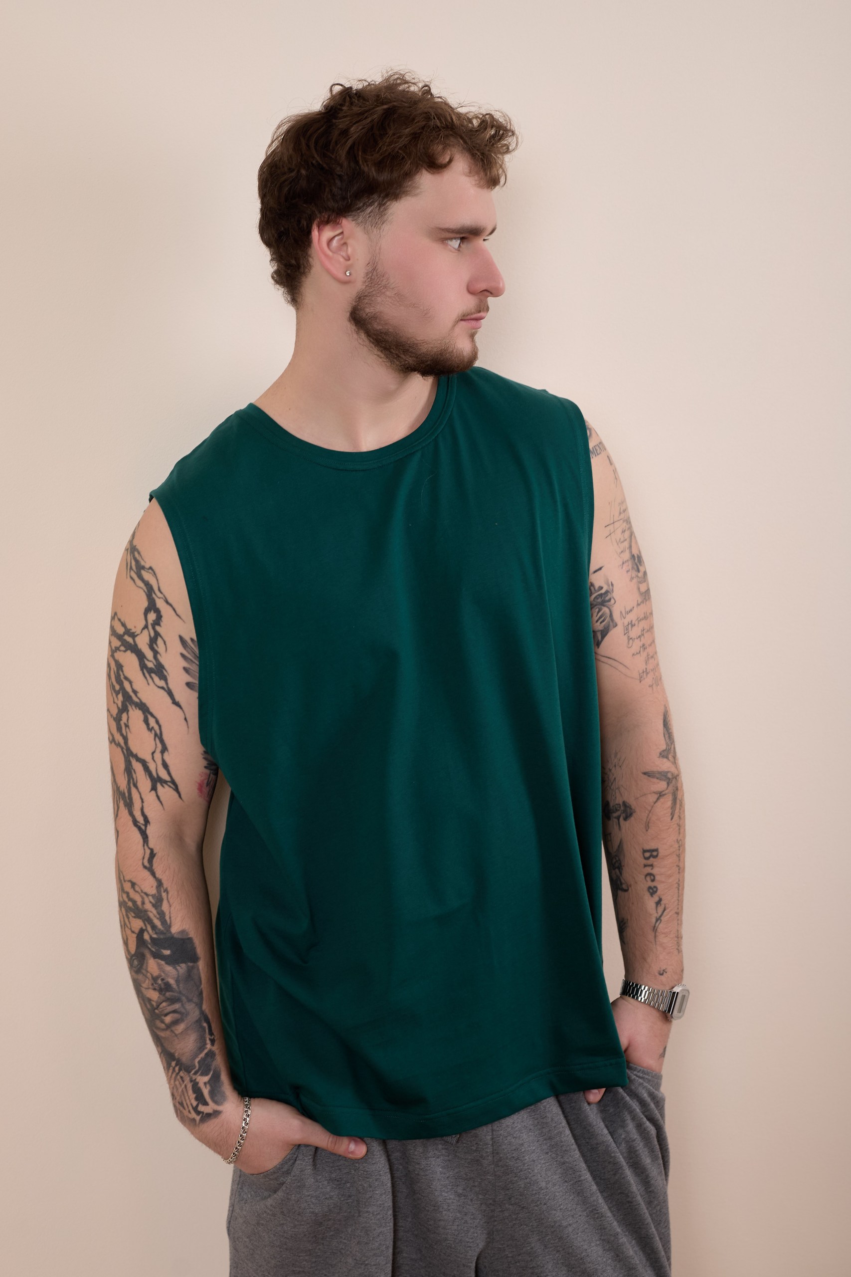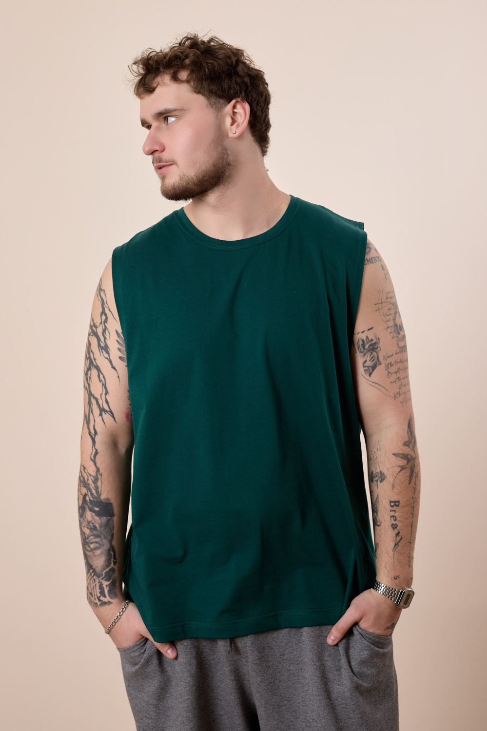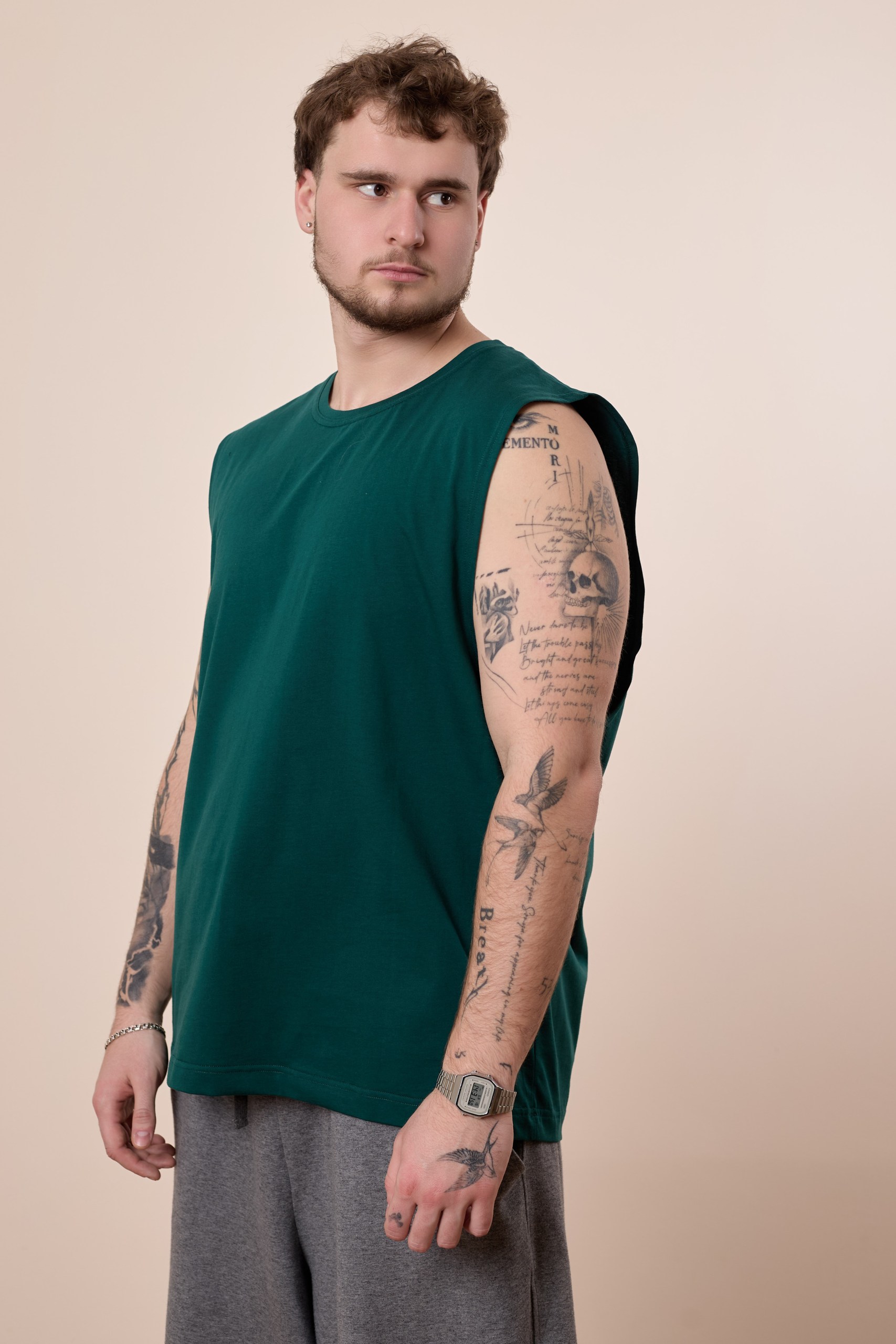 Майка из однотонной кулирки с заниженой проймой и