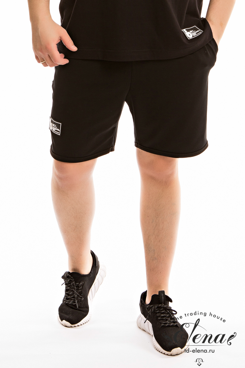 Шорты из однотонной футер петли с лайкрой. С боковыми карманами и притачным поясом на резине и шнуре. Шорты с нашивкой спереди.