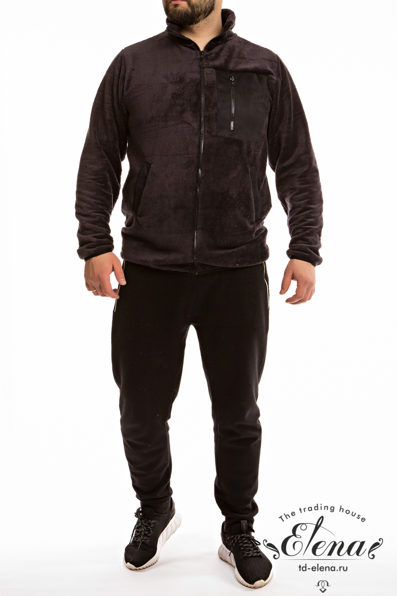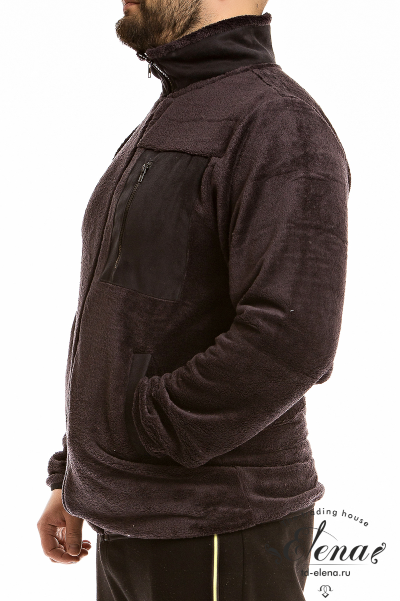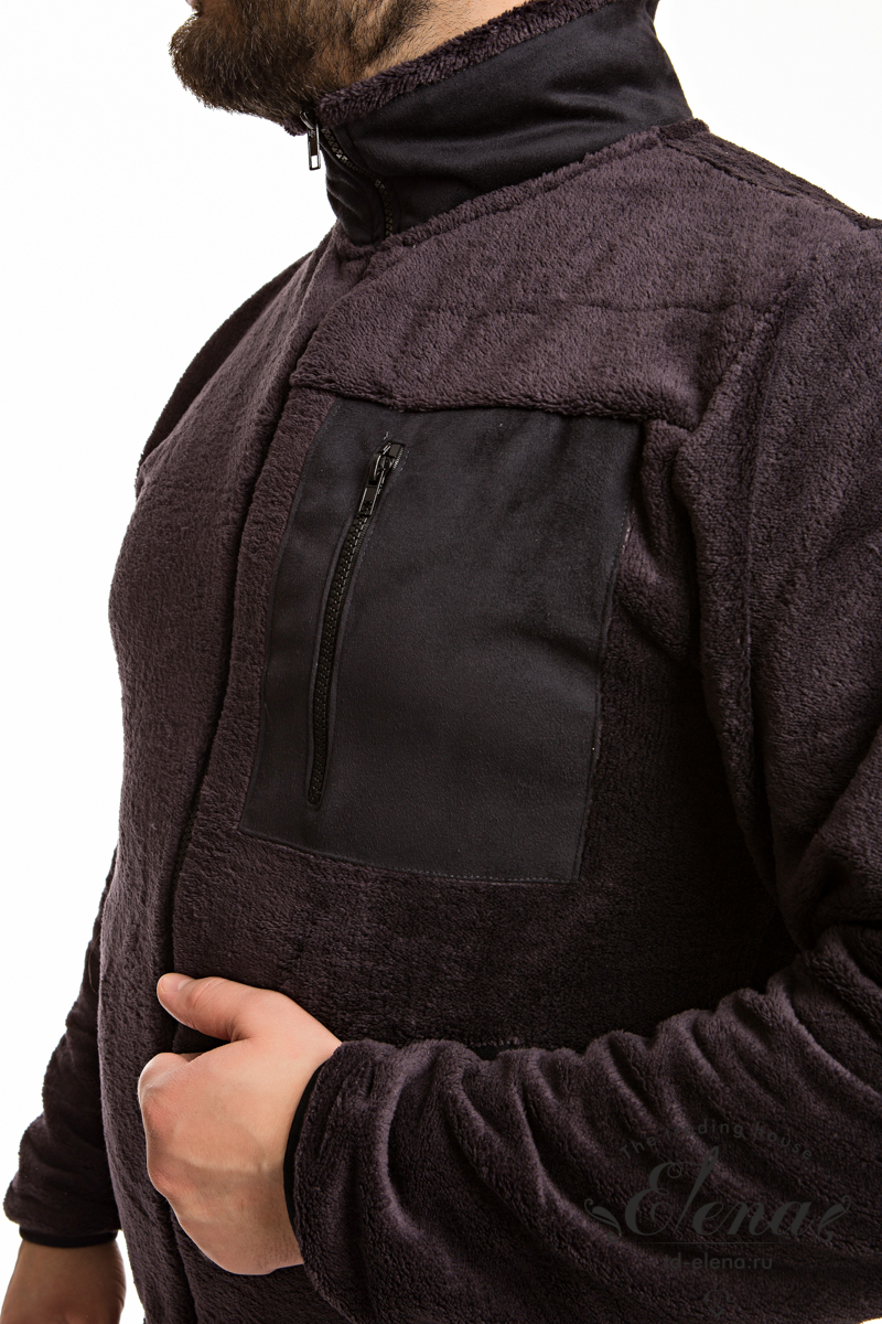 Толстовка из велсофта с застёжкой на молнию. С воротником стойкой, втачными рукавами и карманами по бокам. На воротнике, карманах и накладном нагрудном кармане с молнией в качестве отделки используется искусственная замша. Низ рукавов и изделия окантован эластичной бейкой.