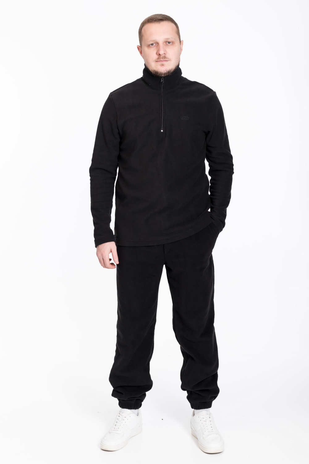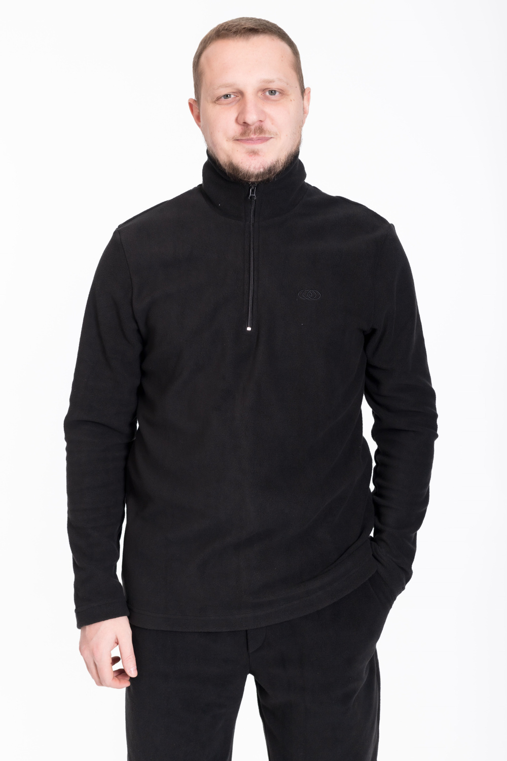 Толстовка из однотонного флиса черного цвета идеально подходит для холодной погоды, сочетая комфорт и практичность с современным стилем.