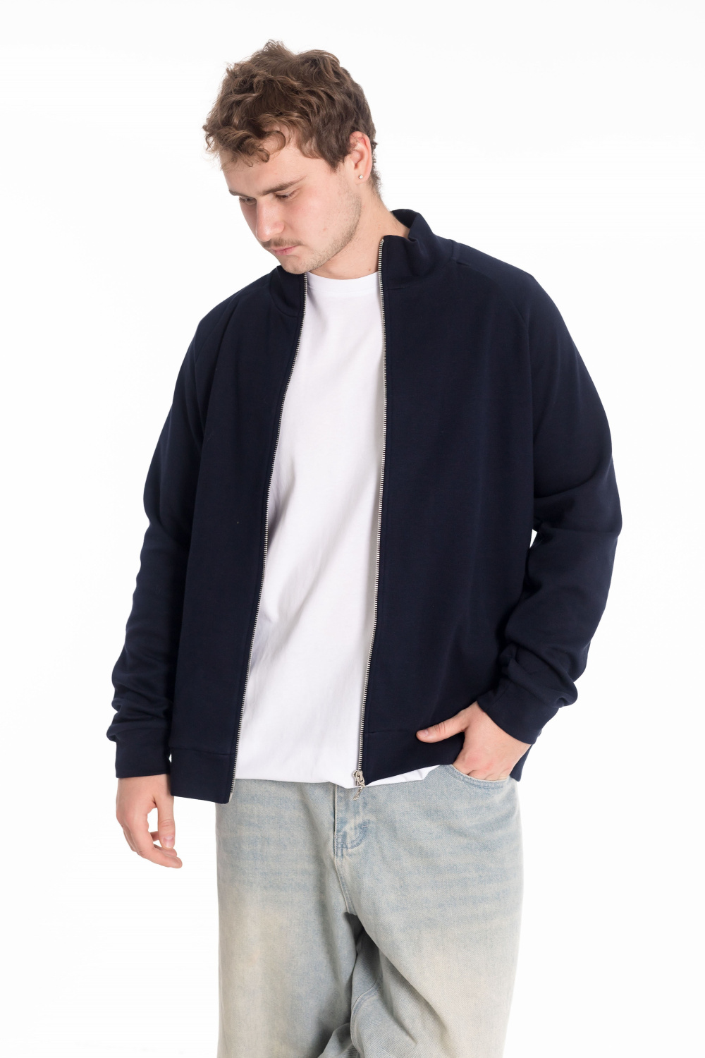 Толстовка выполнена из однотонного полотна «силаник». Модель с рукавами покроя реглан, воротником-стойкой и застёжкой на молнию. По низу изделия и рукавов — притачные манжеты и пояс, обеспечивающие удобную посадку. Практичная и лаконичная толстовка подойдёт для повседневной носки и активного отдыха.