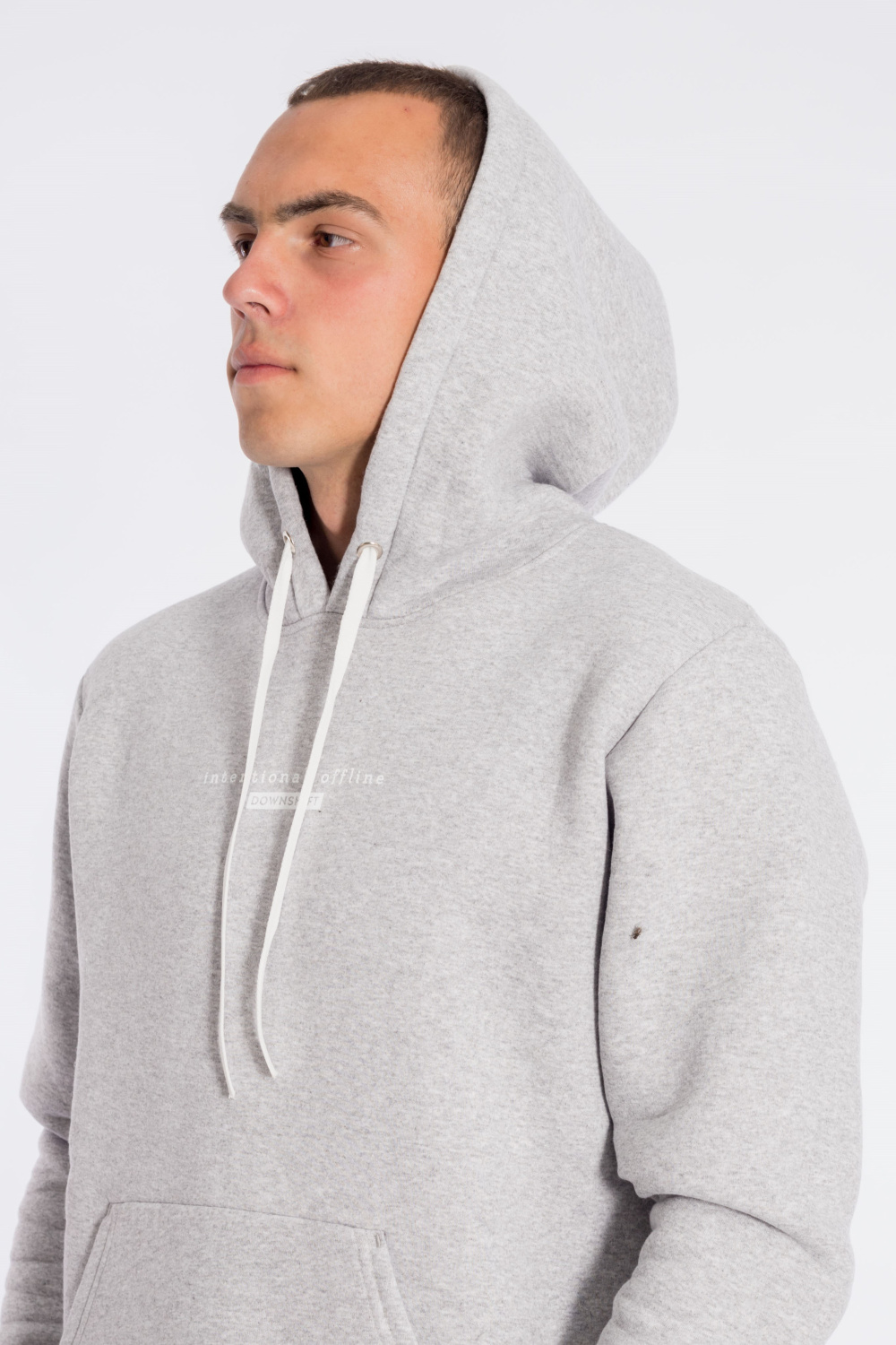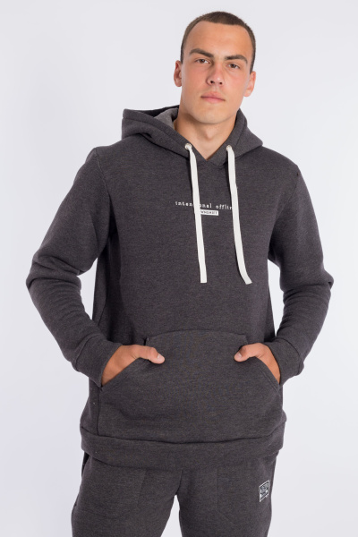 Мужская толстовка выполнена из футера с начесом (трёхнитка). Толстовка с капюшоном со шнуром и длинными рукавами. Спереди нанесён принт и расположен карман-кенгуру. Манжеты рукавов и притачной низ изделия из основного полотна.