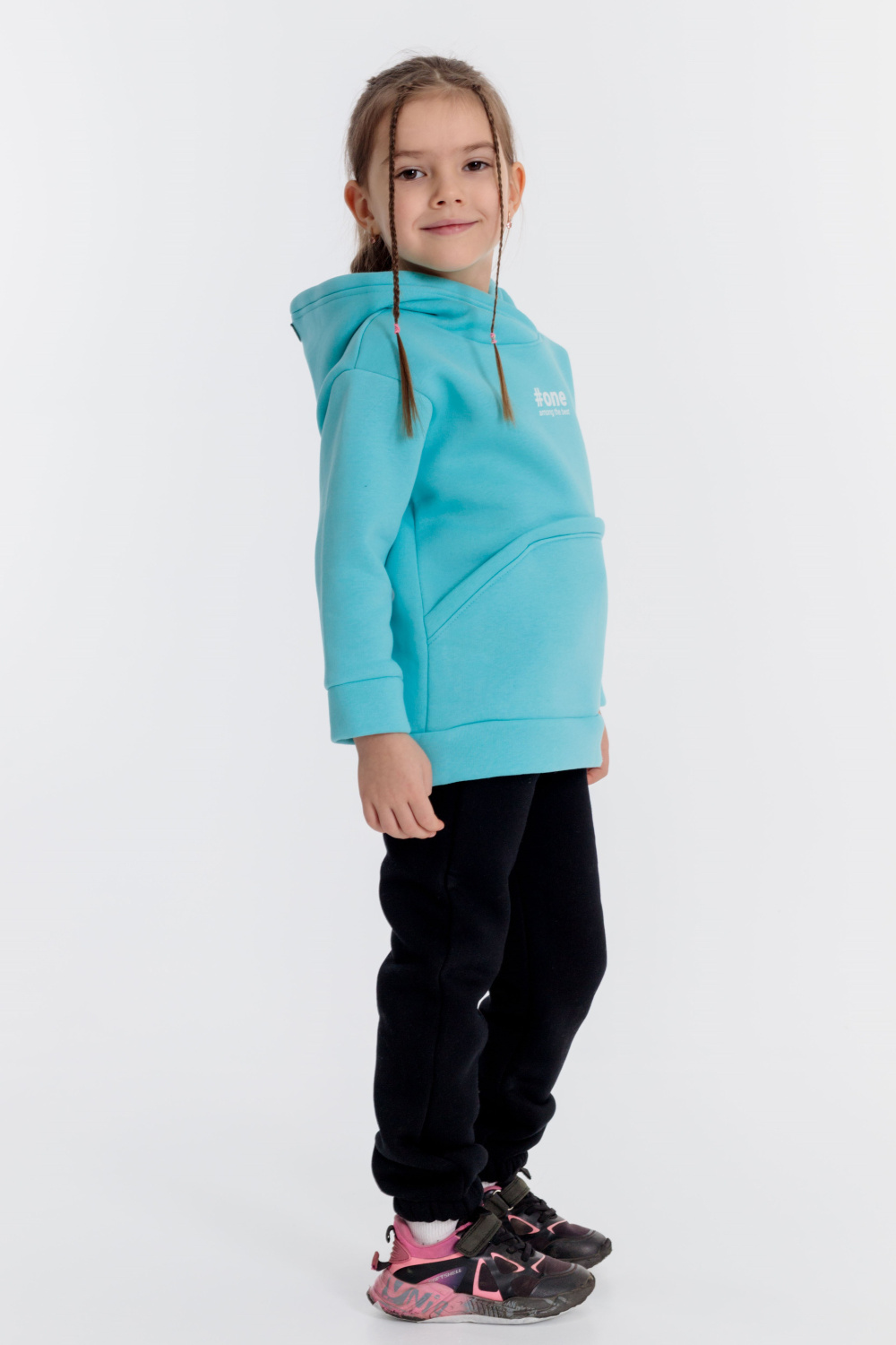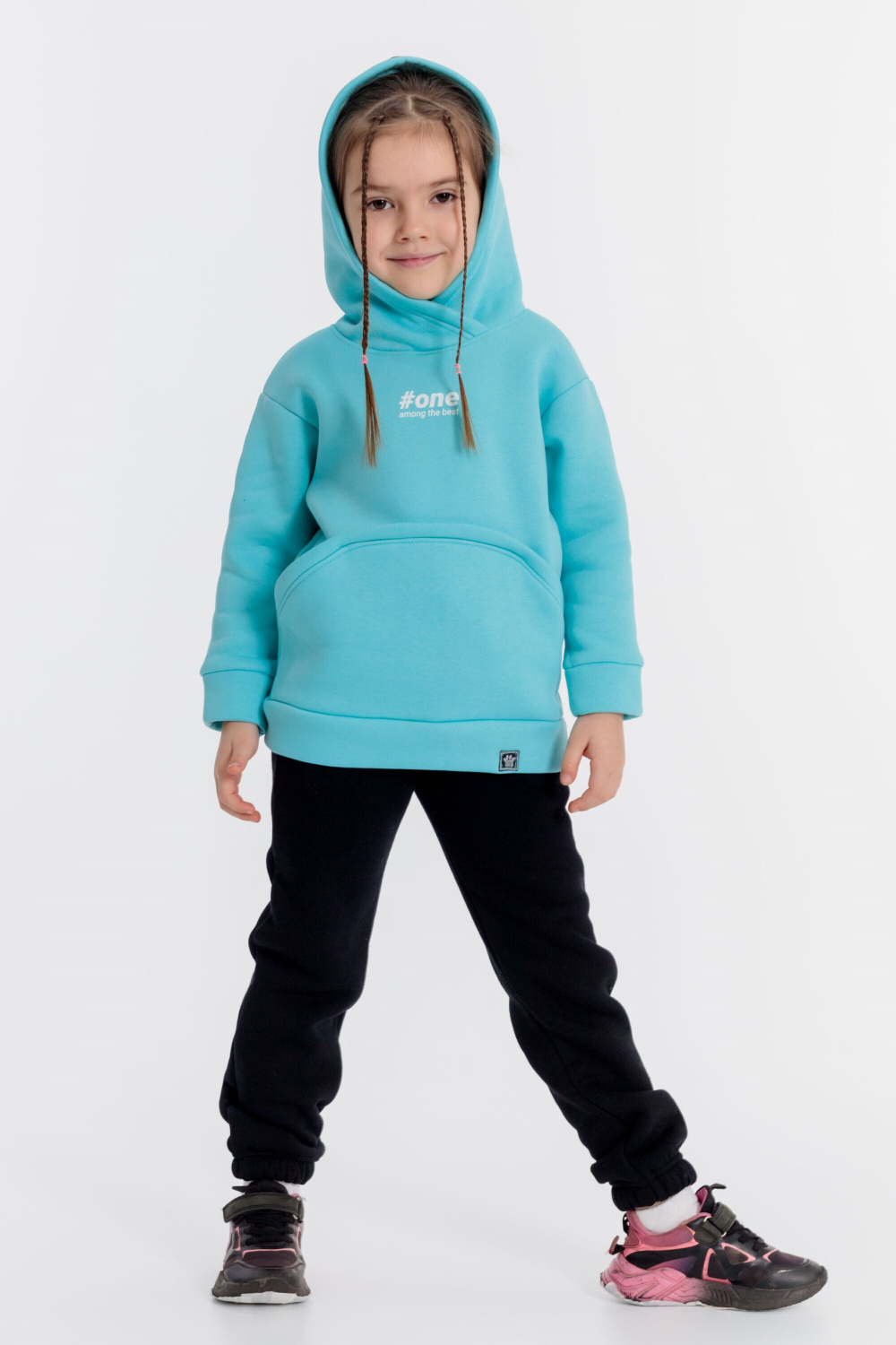Тёплые, детские брюки выполнены из полотна с начёсом. По бокам расположены карманы, а для комфортной посадки в пояс вставлены шнур и резина. Низ брюк на резинке.