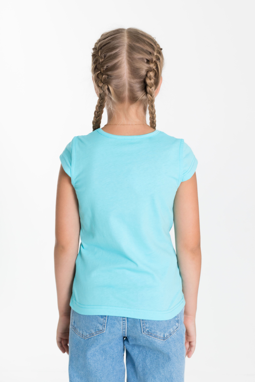 Футболка для девочек с коротким рукавом из хлопка с добавлением лайкры в цвете ментол.