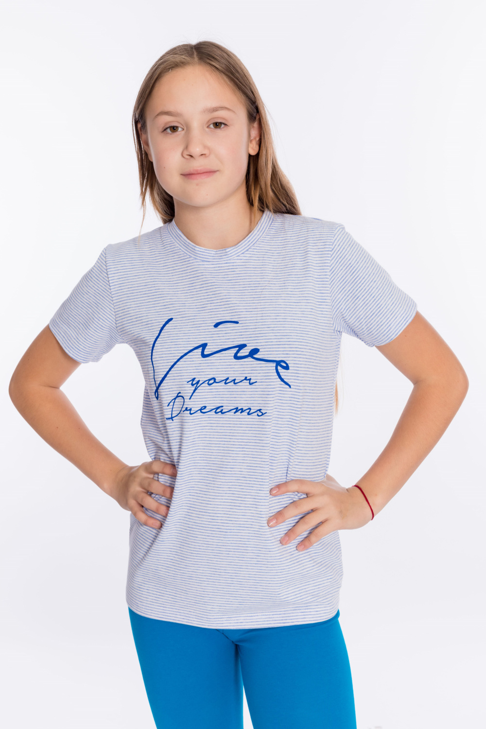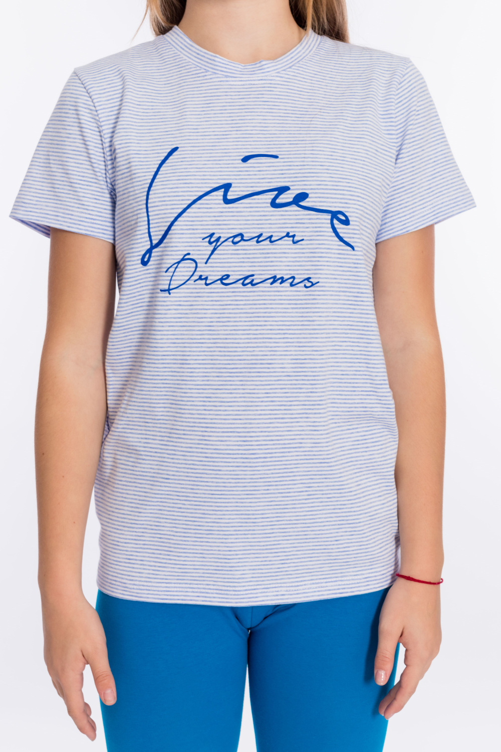 Футболка детская выполнена из х/б полотна с лайкрой. С коротким рукавом и круглым вырезом горловины. Спереди нанесён принт.