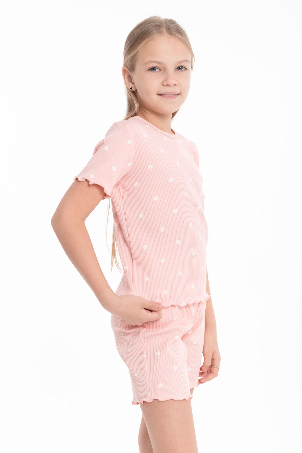 Пижама из мягкого кашкорсе — комфортный вариант для сна и домашнего отдыха. Пижама состоит из футболки и шорт с набивным рисунком. Низ рукавов, футболки и шорт обработан микрооверлоком, что придаёт изделию аккуратный вид и сохраняет эластичность ткани. Материал приятный к телу, хорошо тянется и не сковывает движений.
