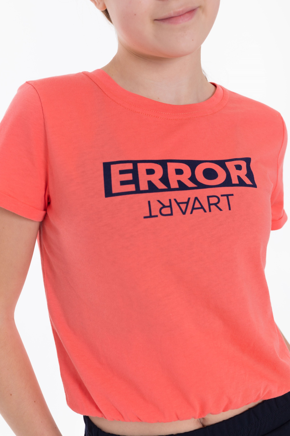 Футболка из х/б полотна, с коротким втачным рукавом, манжетами по низу и принтом спереди, низ футболки на резинке.