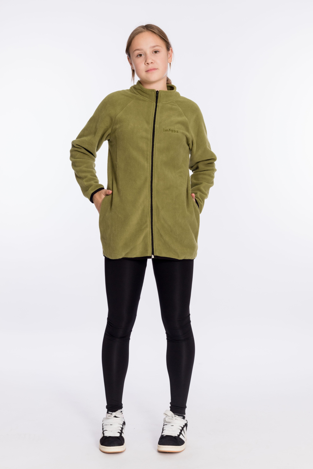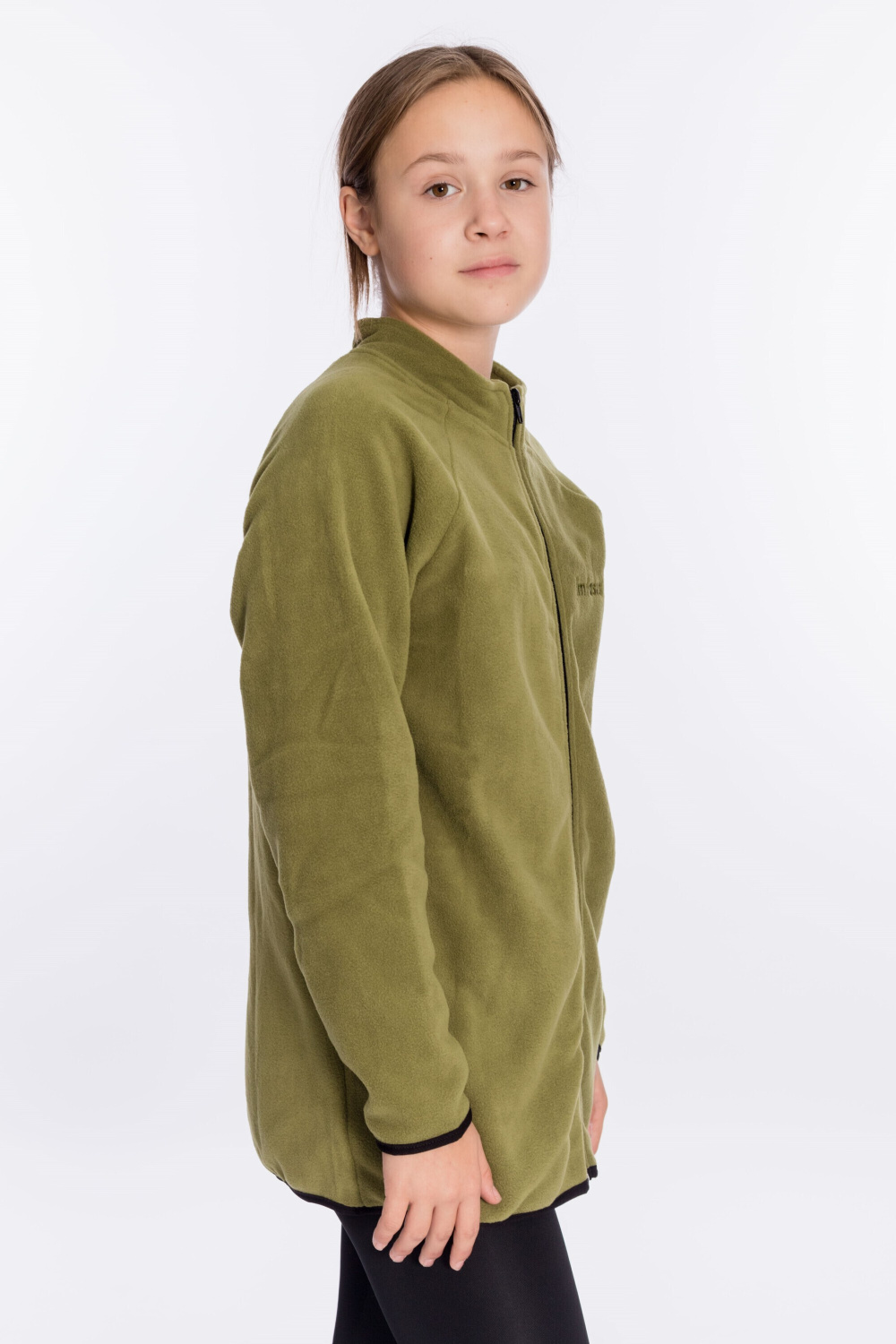 Тёплая и мягкая толстовка из однотонного флиса с застёжкой на молнию. Воротник-стойка. Карманы в боковых швах. Низ рукавов и изделия обработаны отделочной эластичной тесьмой. С левой стороны толстовку украшает вышивка.