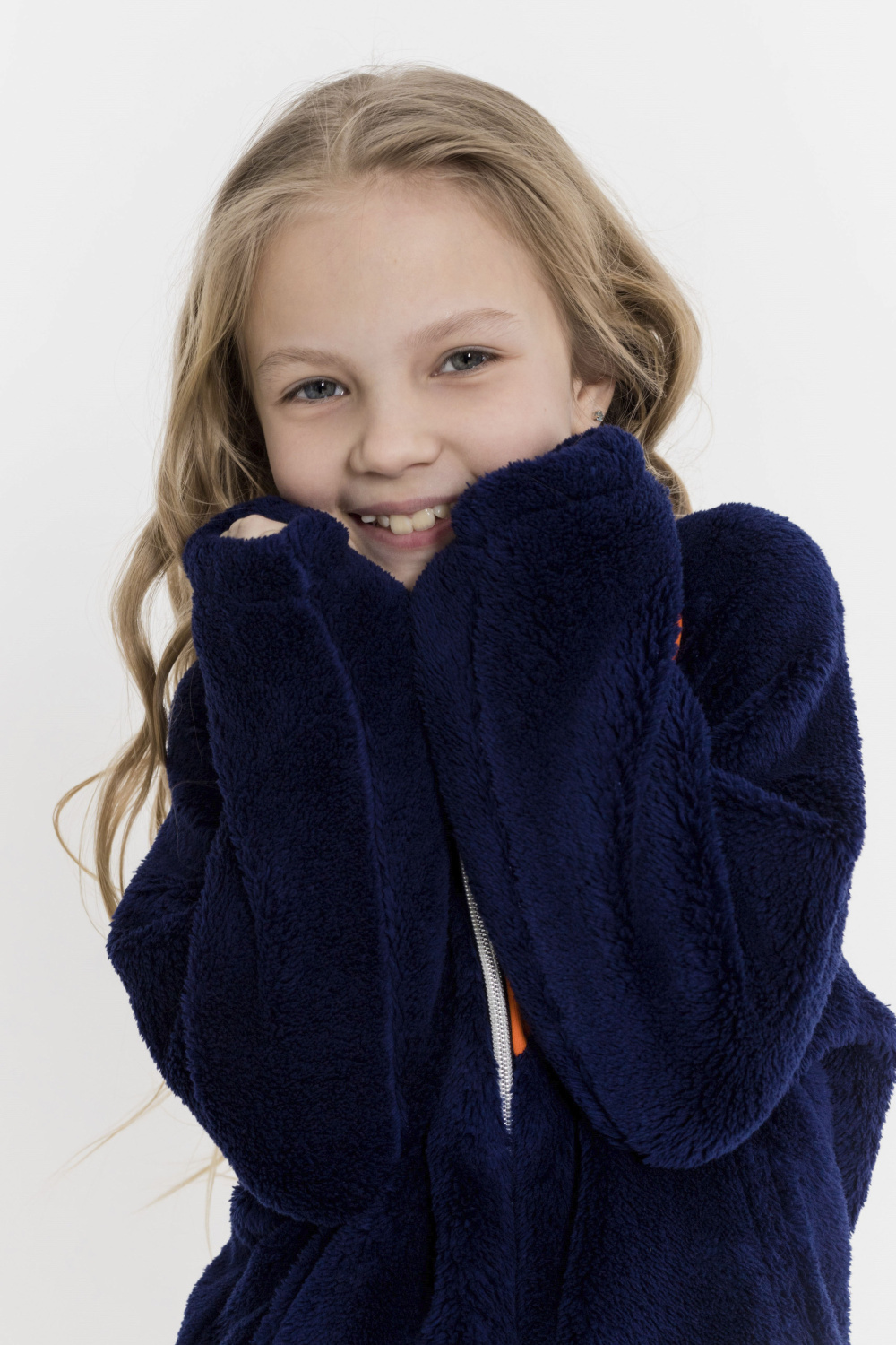 Толстовка из однотонного велсофта с отделочной кокеткой с вышивкой спереди. Рукава длинные, с резинкой по низу. Воротник-стойка, центральная застёжка на молнию. По бокам размещены карманы. Низ толстовки утягивается при помощи шнура-резинки.