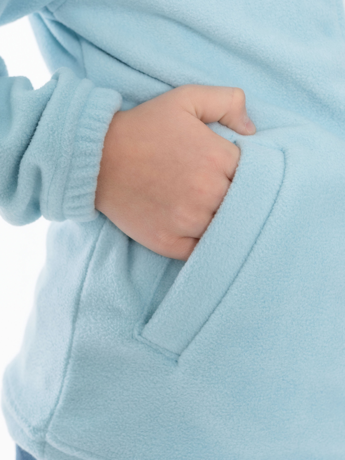 Толстовка из мягкого флиса создана для комфорта и тепла в прохладные дни. Модель выполнена на молнии с защитой подбородка, что делает её удобной в носке. Втачные рукава дополнены манжетами на резинке для лучшей посадки и защиты от ветра. По бокам расположены практичные карманы. Универсальная и лёгкая, эта толстовка станет незаменимой частью детского гардероба для прогулок и активного отдыха.