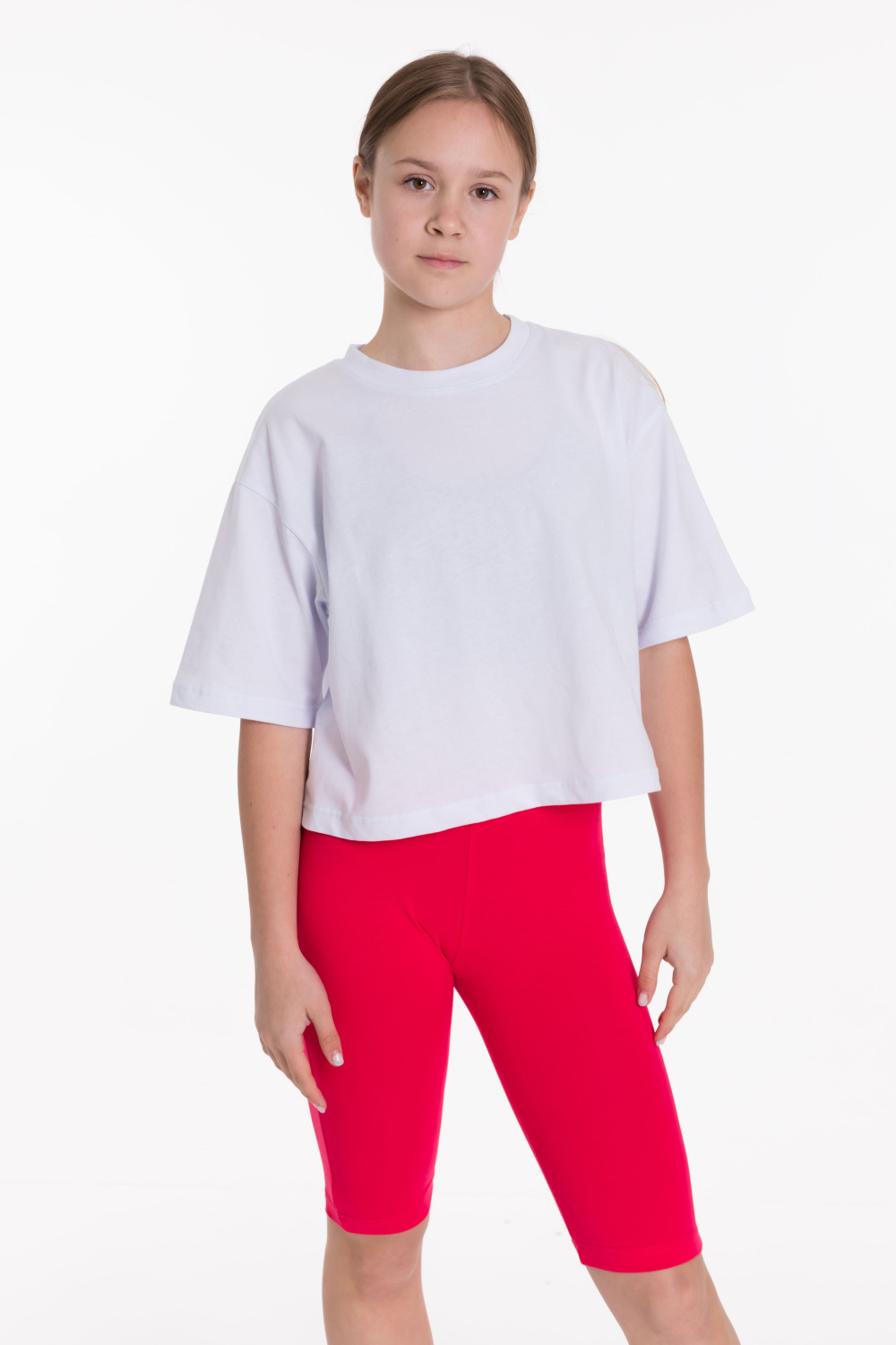 Велосипедки из однотонной кулирки с лайкрой, пояс на резинке.