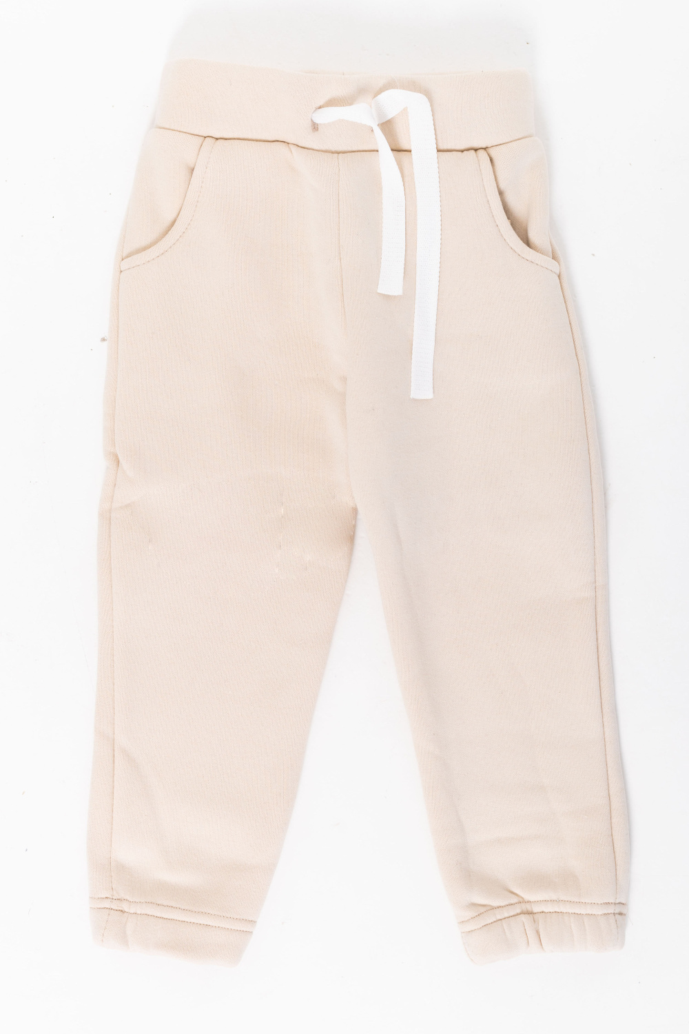 Тёплые, детские брюки выполнены из полотна с начёсом. По бокам расположены карманы, а для комфортной посадки в пояс вставлены шнур и резина. Низ брюк на резине.