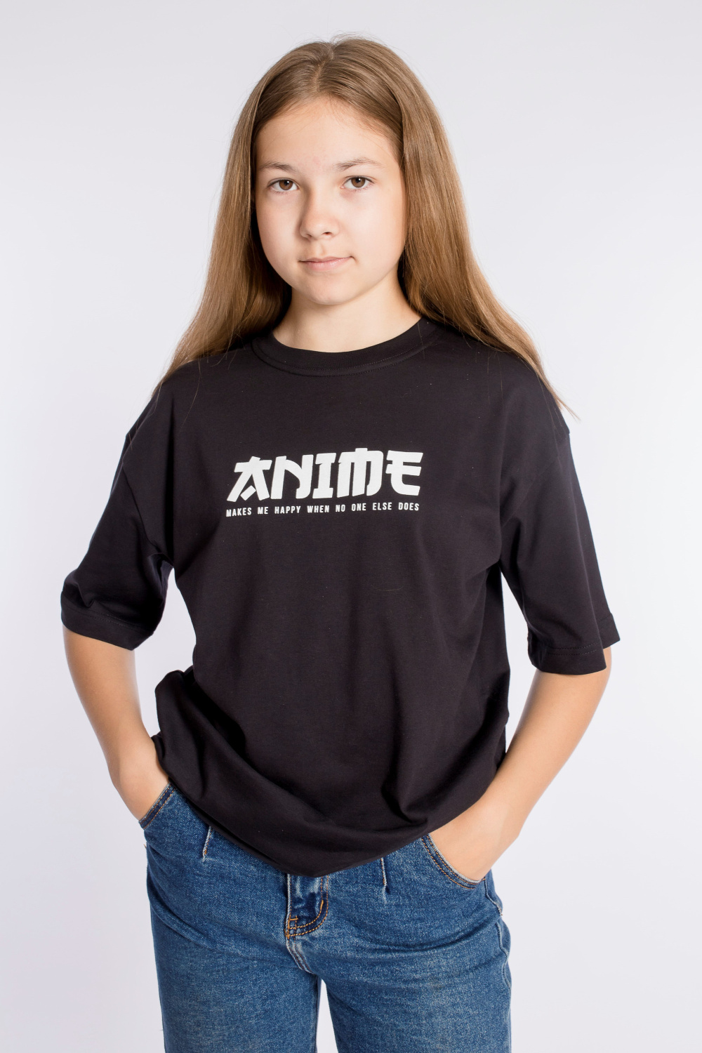Футболка оверсайз из однотонной кулирки, 100% хлопок. С коротким рукавом и круглым вырезом горловины, оформленным планкой. Спереди нанесён принт.