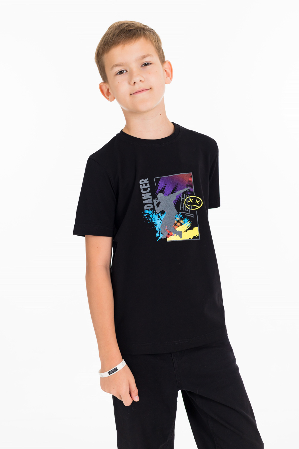 Футболка выполнена из хлопкового полотна с добавлением лайкры. Футболка с круглым вырезом горловины и принтом спереди.
