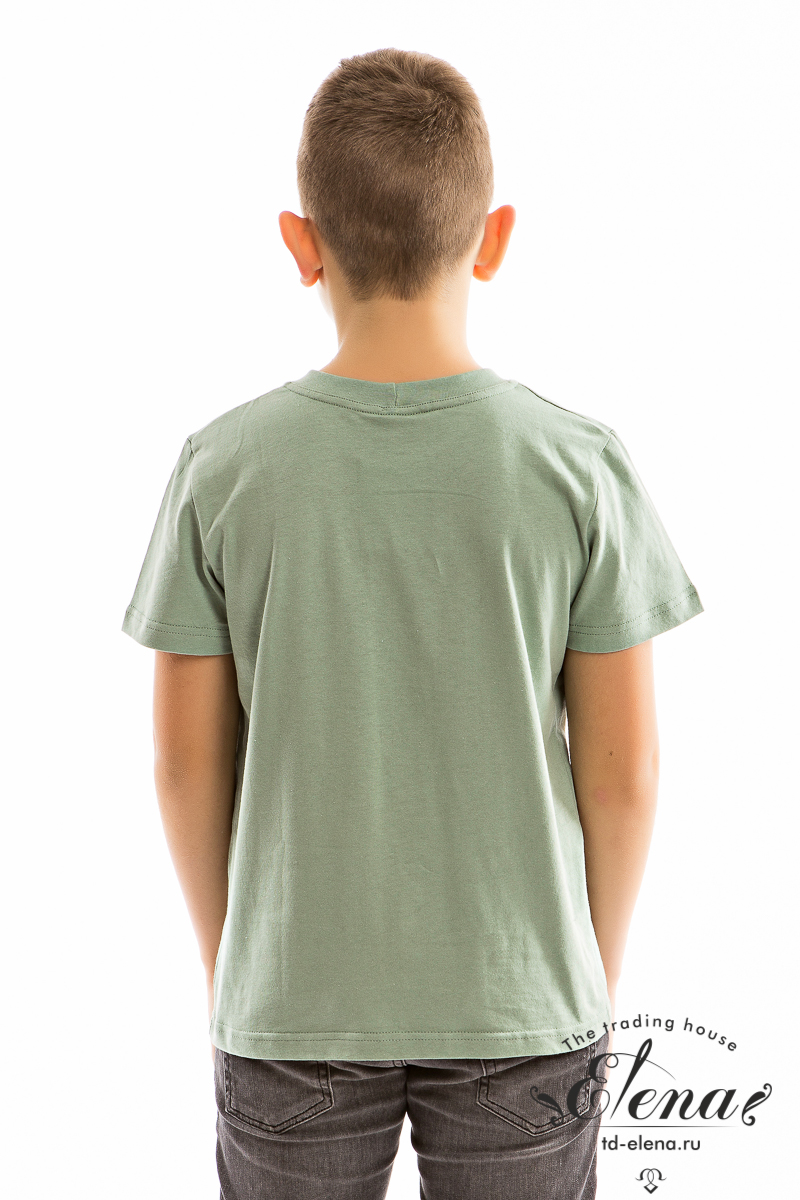 Футболка выполнена из хлопкового полотна, с коротким рукавом и круглым вырезом горловины. Спереди нанесён принт.