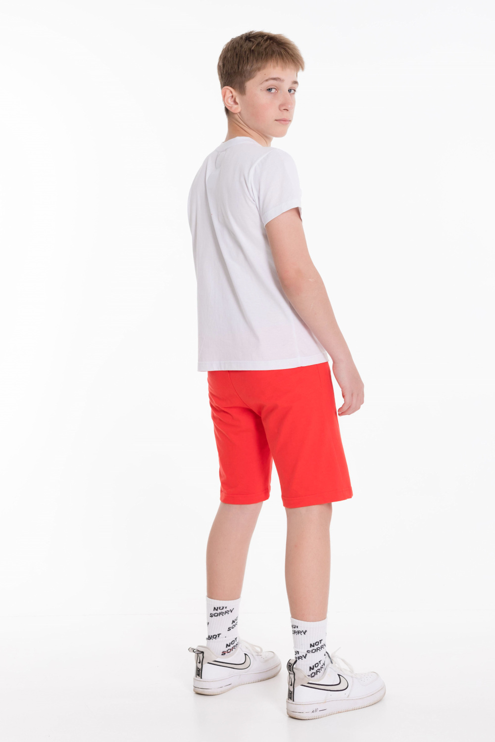 Костюм для мальчиков из 100% хлопка. Футболка с круглым вырезом горловины, втачным рукавом и принтом на полочке. Шорты с поясом на резинке.