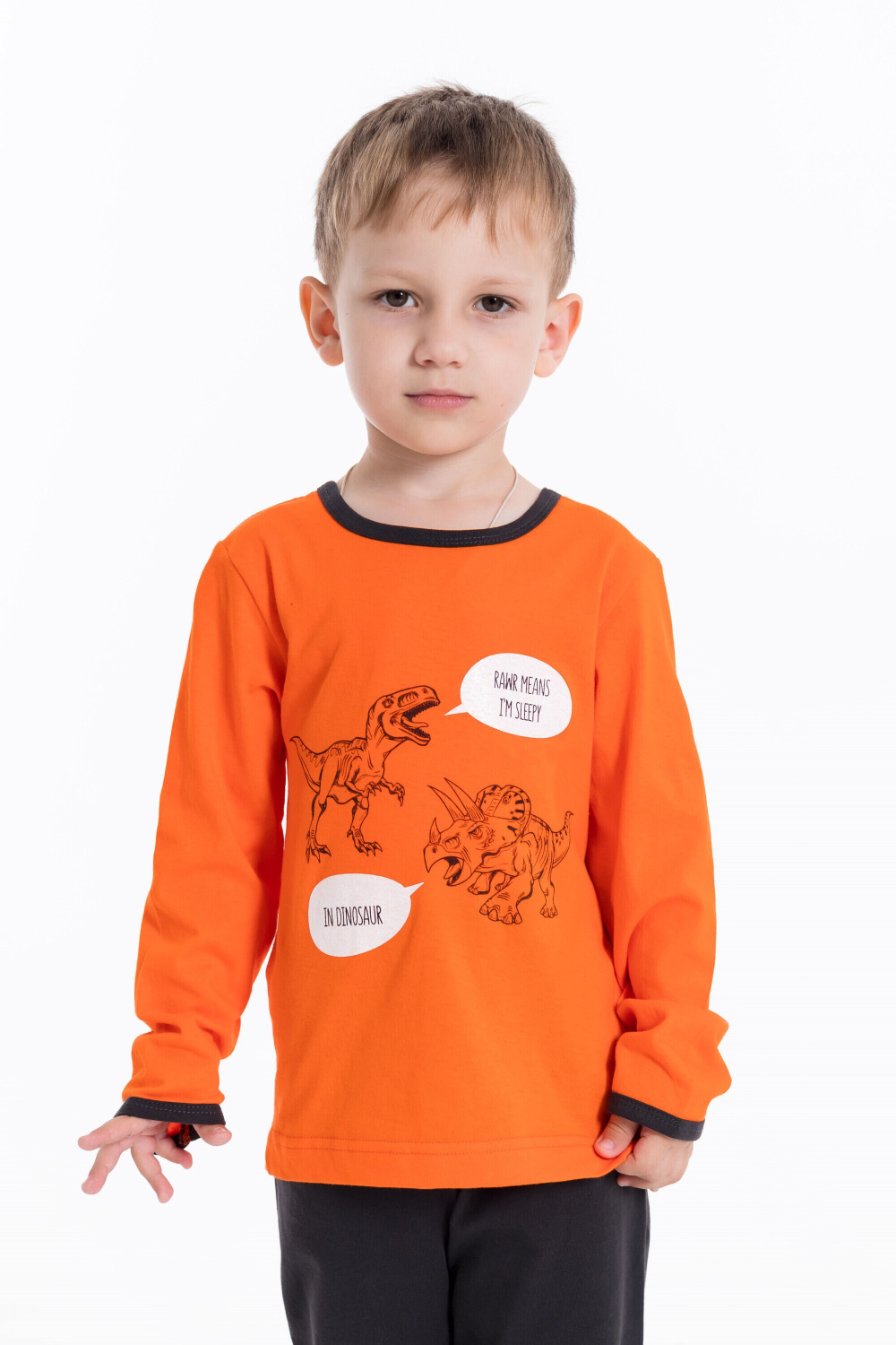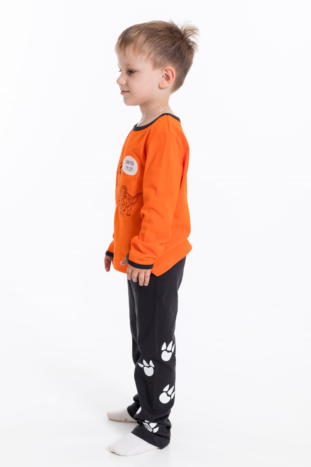Пижама для мальчика из 100%-ного хлопка — это отличный выбор для комфортного сна и отдыха. Футболка с длинными рукавами и круглым вырезом горловины обеспечивает свободу движений, а пояс на резинке на брюках гарантирует удобную посадку.