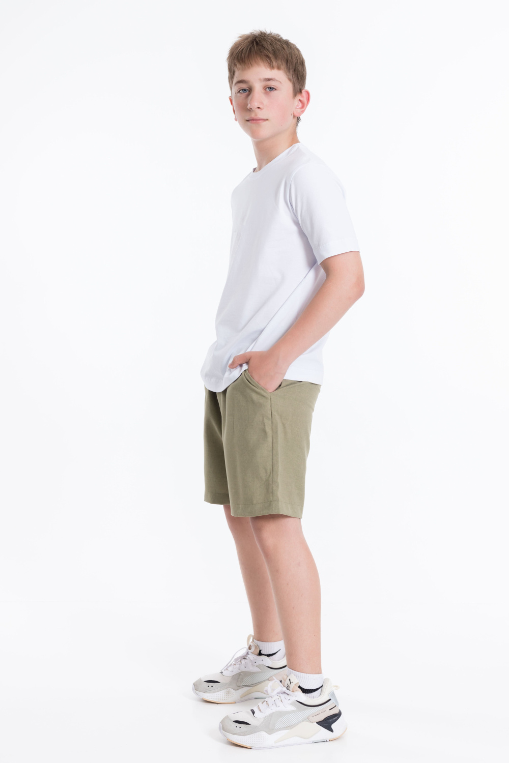 Шорты для мальчиков из полотна "искусственнй лен". Пояс на резинке, боковые карманы.
