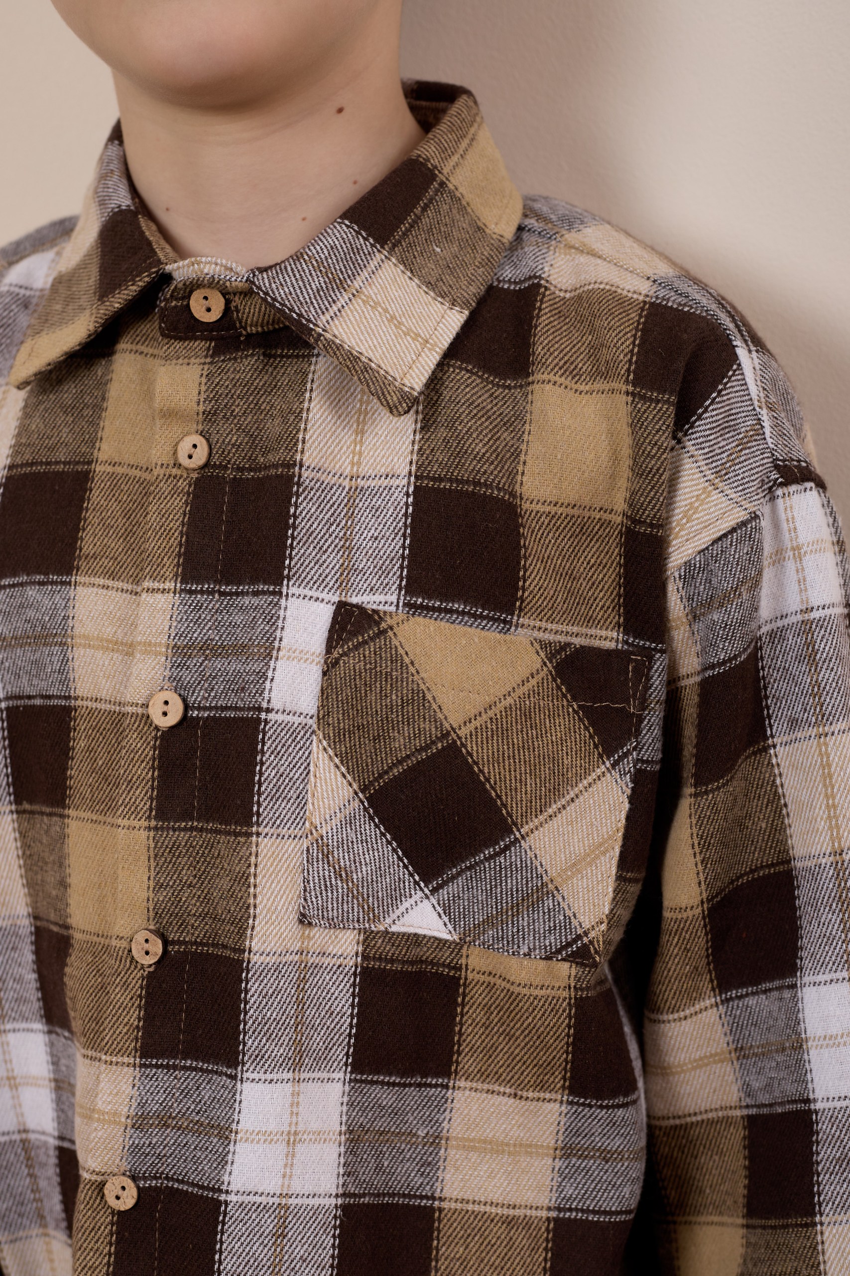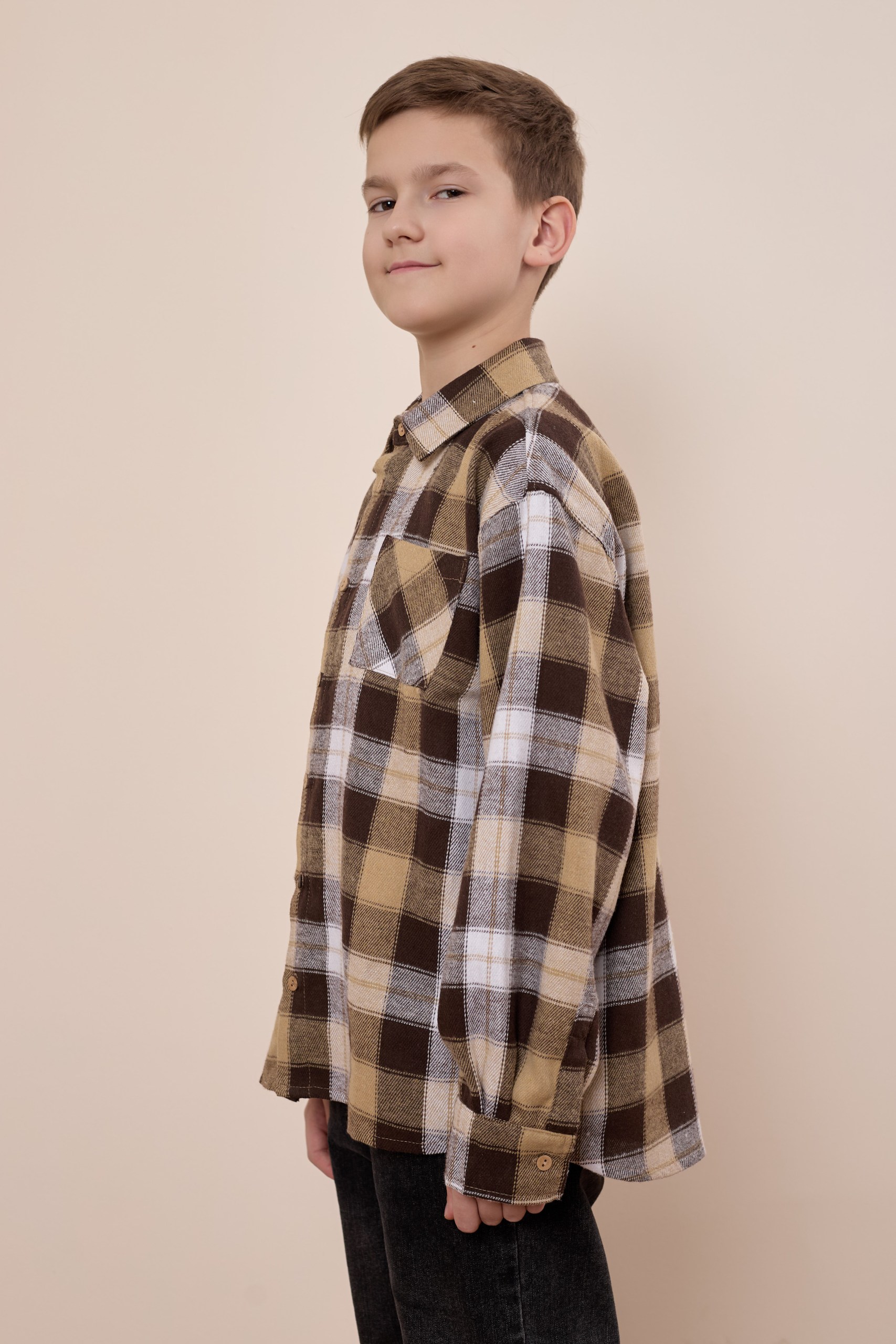 Рубашка с длинным рукавом из материала "рубашечный шерон" и застёжкой на пуговицы — отличный выбор для ребенка. Обеспечивает свободу движений, комфорт и аккуратный внешний вид. Воротник придаёт изделию стильный вид.