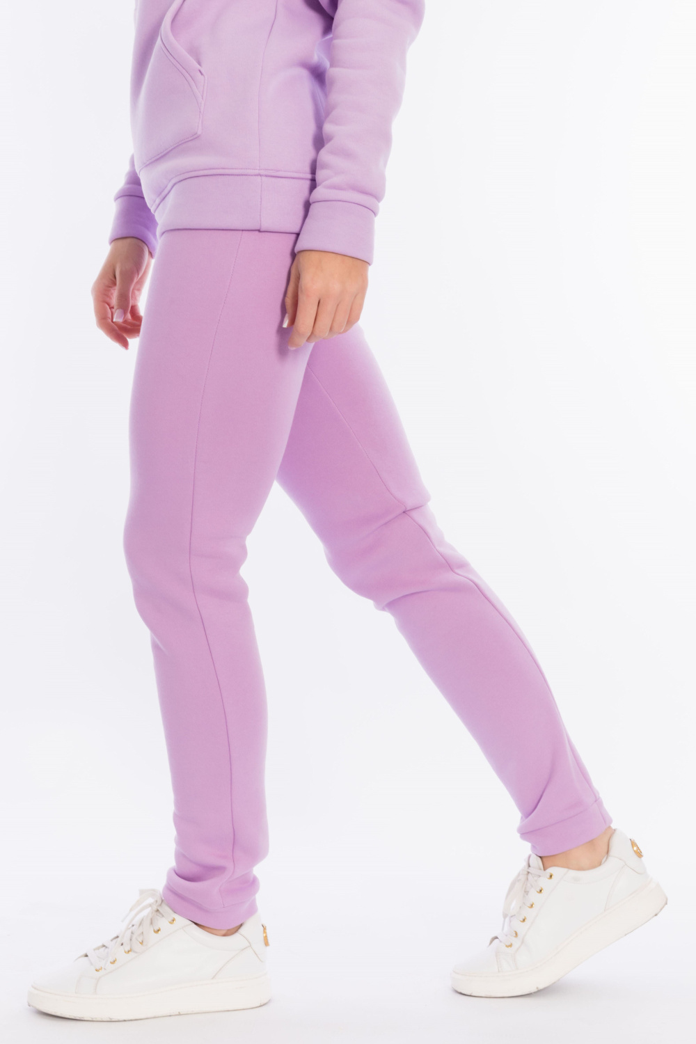 Брюки с поясом на резине и манжетами внизу. Выполнены из полотна с начёсом.