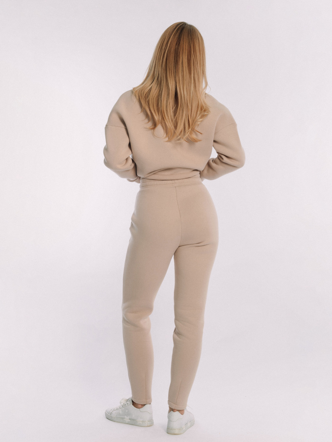 Женские брюки выполнены из полотна с начесом. Модель с боковыми карманами для практичности. Эластичный пояс со шнуром обеспечивает идеальную посадку по фигуре. Декоративные вытачки по низу брючин добавляют модели элегантности и визуальной легкости. Уютная и стильная модель для повседневной носки и отдыха.