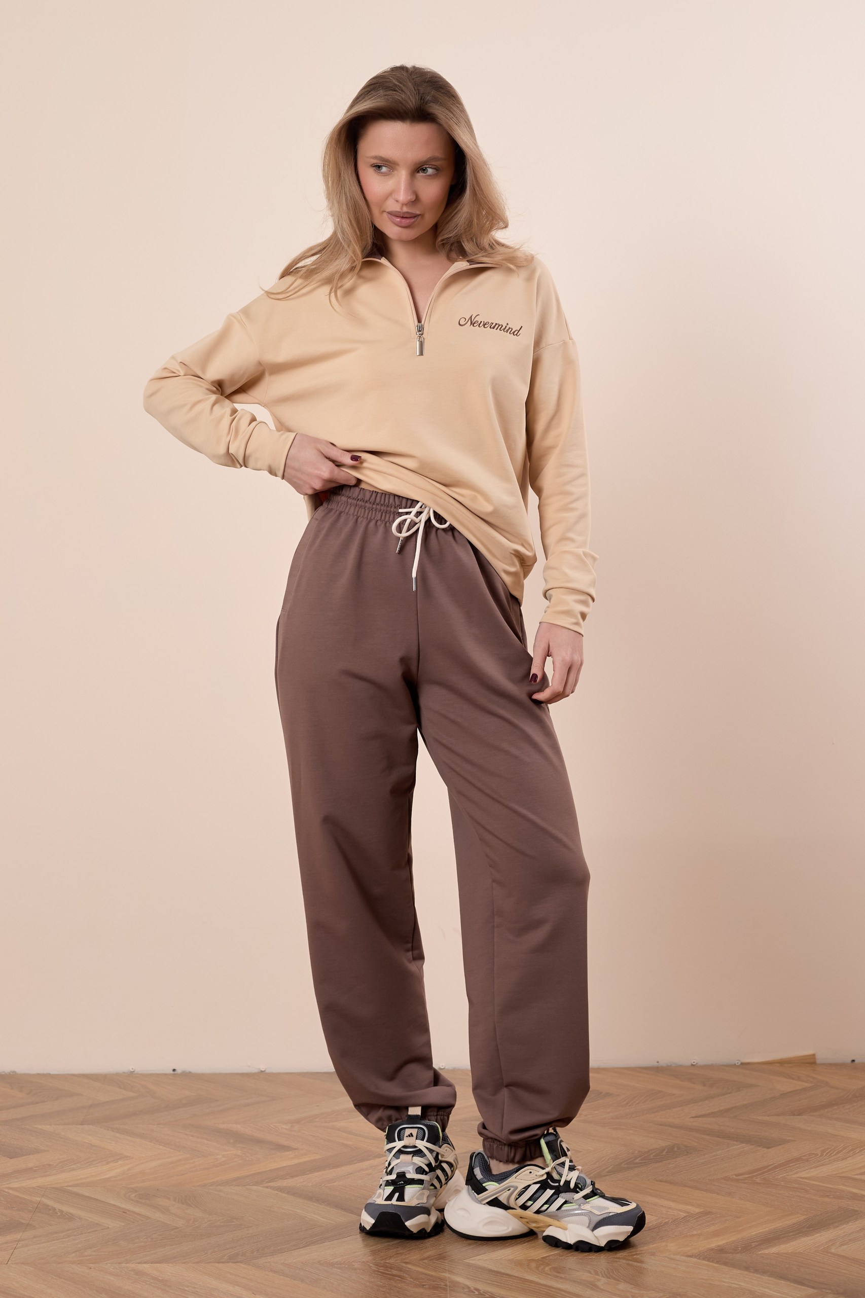 Брюки трикотажные, свободного кроя, с цельнокроеным поясом