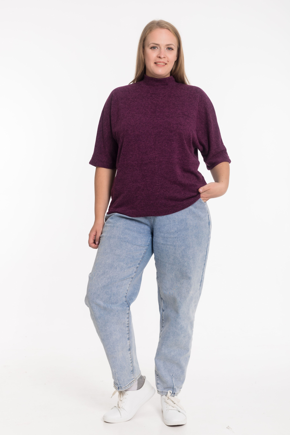 Женский джемпер из мягкой меланжевой "ангоры" — стильная и уютная модель на каждый день. Изделие выполнено с цельнокроеным рукавом длиной чуть ниже локтя, что придаёт образу женственность и лёгкость. Воротник-стойка мягко облегает шею, создавая элегантный силуэт. Идеальный выбор для прохладных дней и комфортных повседневных образов.