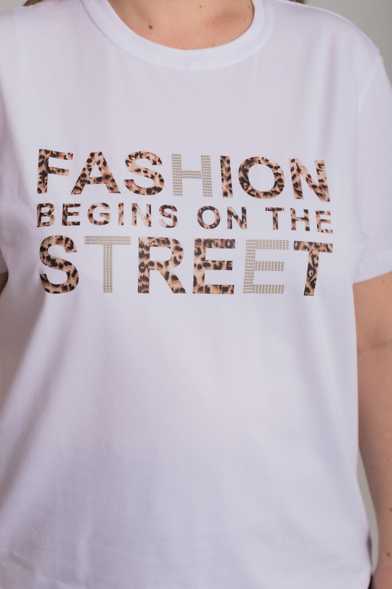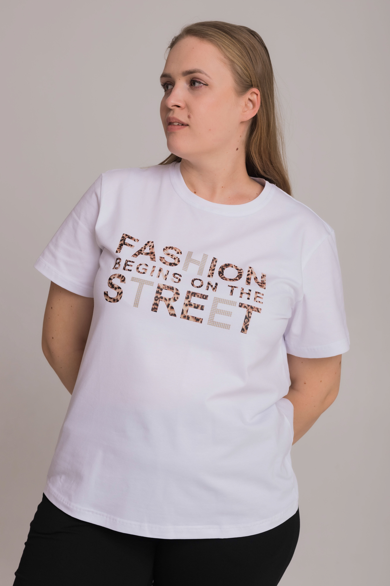 Женская футболка с принтом спереди изготовлена из хлопкового полотна с добавлением лайкры. Футболка с коротким втачным рукавом и круглым вырезом горловины, что придает ей классический стильный вид. Такая модель футболки отлично сочетается с джинсами, брюками или юбкой. Изготовленная из натуральной ткани, футболка обеспечит комфорт в течение всего дня.