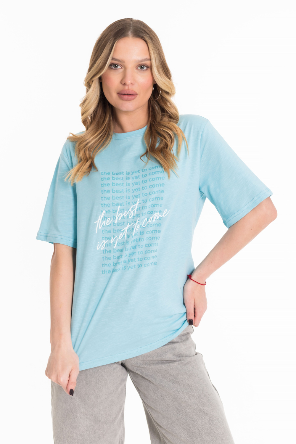 Женская футболка с принтом изготовлена из хлопкового полотна - кулирка "фламли", что обеспечивает комфорт и хорошую воздухопроницаемость. Футболка имеет короткий рукав и круглый вырез горловины, что придает ей классический стильный вид. Такая модель футболки отлично сочетается с джинсами, брюками или юбкой. Изготовленная из натуральной ткани, футболка обеспечит комфорт в течение всего дня.