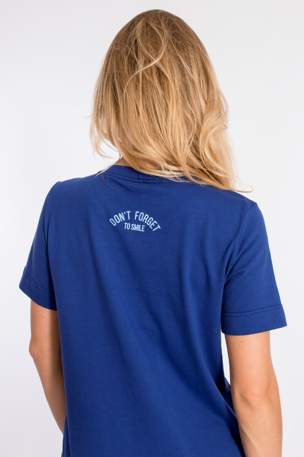 Футболка из однотонной кулирки, 100% хлопок. С коротким втачным рукавом и притачной планкой по горловине. Сзади нанесён принт.