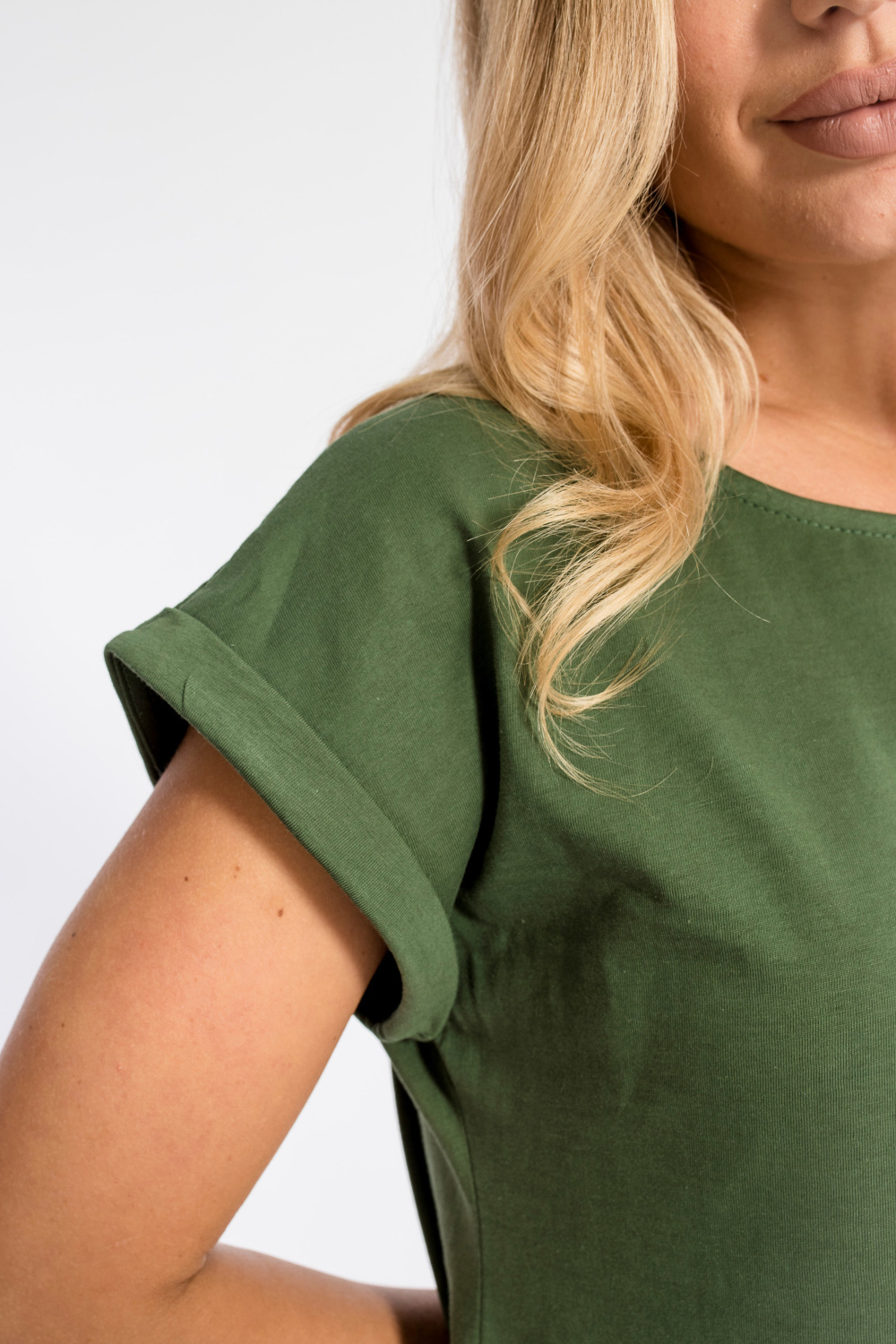 Женская футболка из кулирки — отличный выбор для повседневной носки. Изготовленная из мягкой и приятной к телу ткани, она обеспечивает комфорт в течение дня. Круглый вырез горловины и короткие цельнокроеные рукава с отворотами придают изделию аккуратный вид. Наличие принта спереди добавляет футболке оригинальности. Однотонный цвет хаки позволяет сочетать её с различными элементами гардероба. Футболка подойдёт для прогулок, неформальных встреч или отдыха.