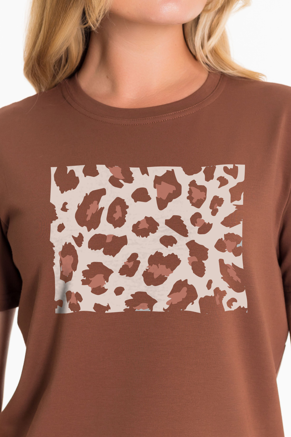 Женская футболка с принтом спереди изготовлена из хлопкового полотна с добавлением лайкры. Футболка с коротким втачным рукавом и круглым вырезом горловины, что придает ей классический стильный вид. Такая модель футболки отлично сочетается с джинсами, брюками или юбкой. Изготовленная из натуральной ткани, футболка обеспечит комфорт в течение всего дня.