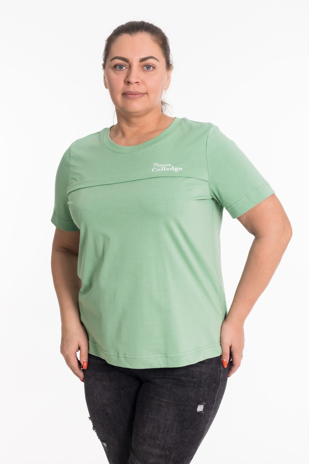 Женская футболка с принтом изготовлена из хлопкового полотна, что обеспечивает комфорт и хорошую воздухопроницаемость. Футболка имеет короткий рукав и круглый вырез горловины, что придает ей классический стильный вид. Такая модель футболки отлично сочетается с джинсами, брюками или юбкой. Изготовленная из натуральной ткани, футболка обеспечит комфорт в течение всего дня.
