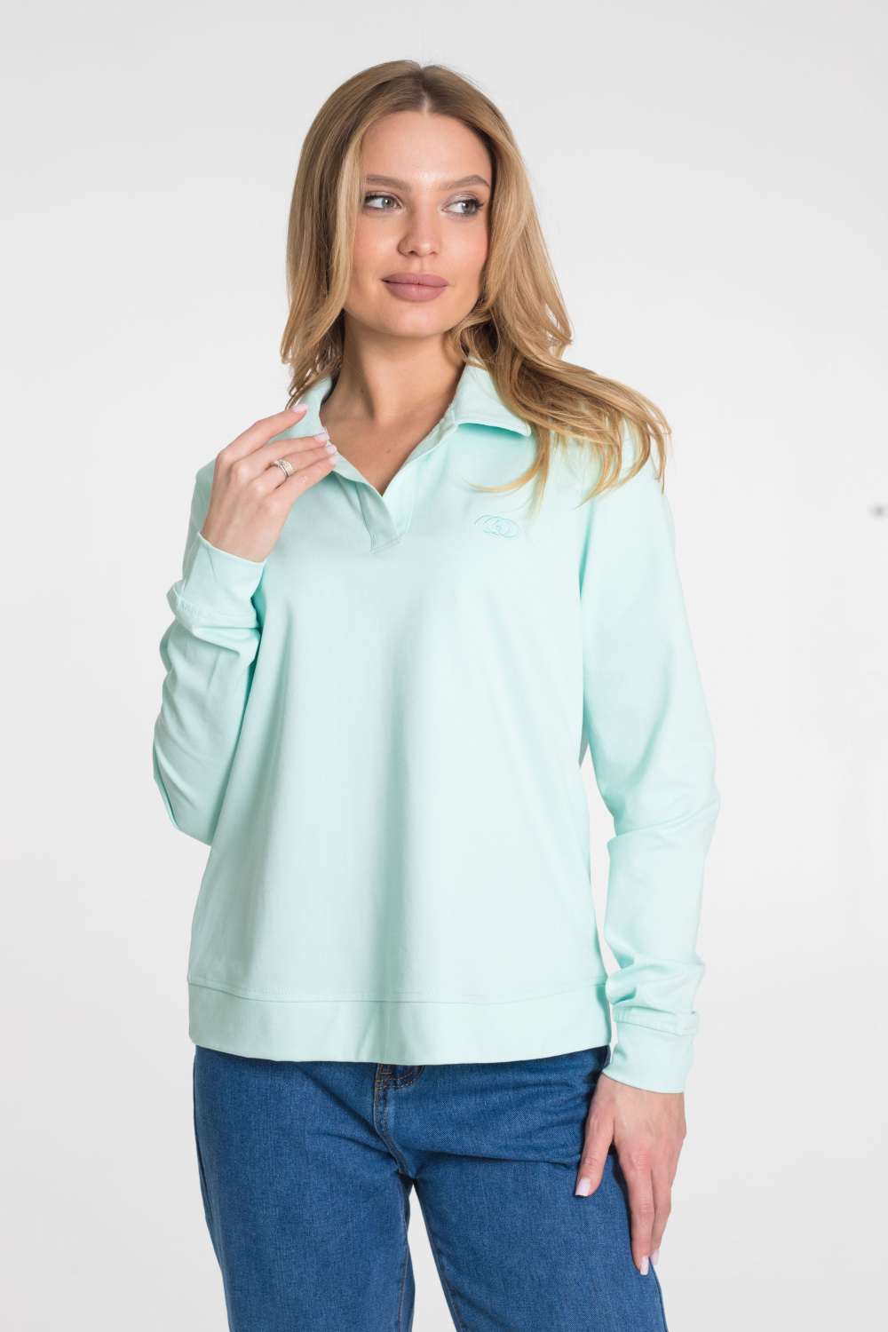 Футболка с длинным рукавом выполнена из полотна "пике" красивого ментолового цвета.