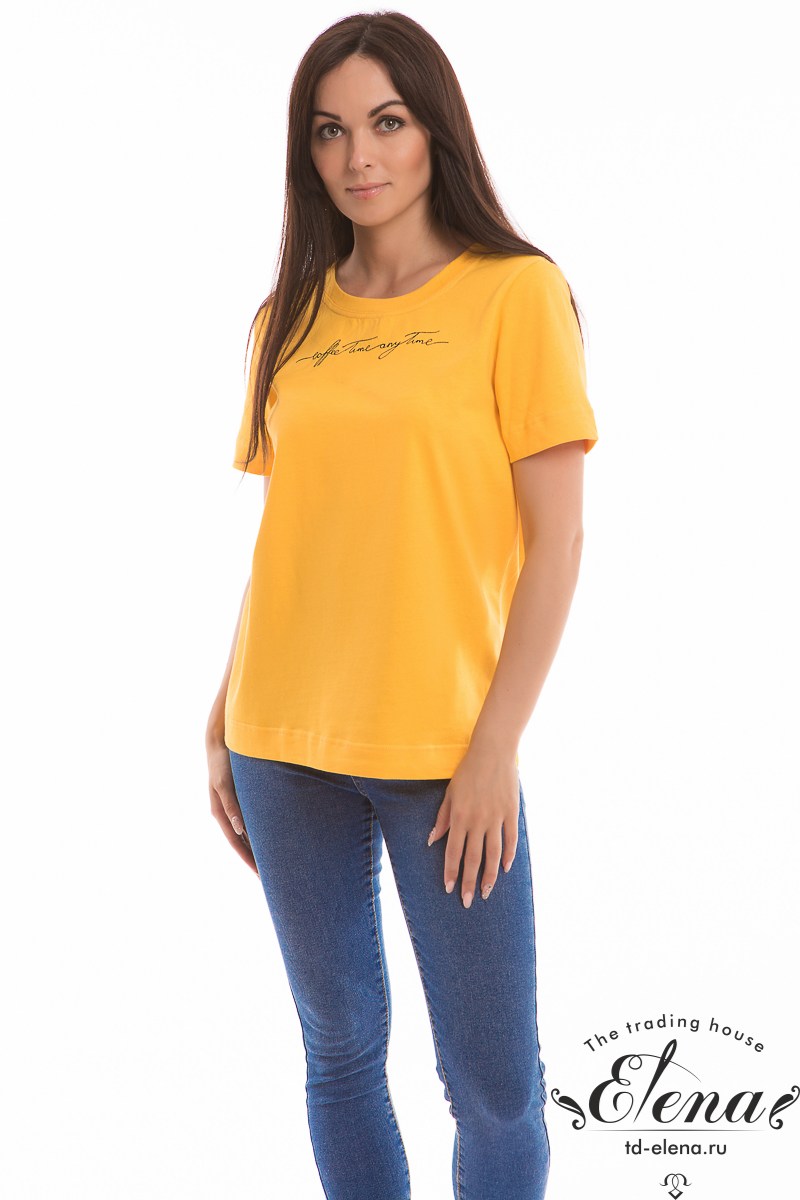 Футболка из кулирки, 100%хлопок, с коротким втачным рукавом и притачной планкой по горловине. Спереди вышивка.