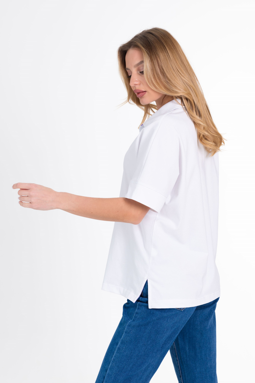 Футболка из полотна "пике". Свободного силуэта, по бокам внизу