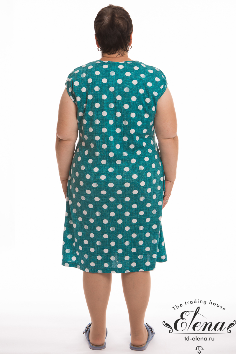 Халат выполнен из х/б полотна с набивным рисунком. Халат застёгивается на молнию, в боковых швах расположены карманы. Горловина и проймы обработаны бейкой. Сзади расположен фиксирующий по талии пояс.