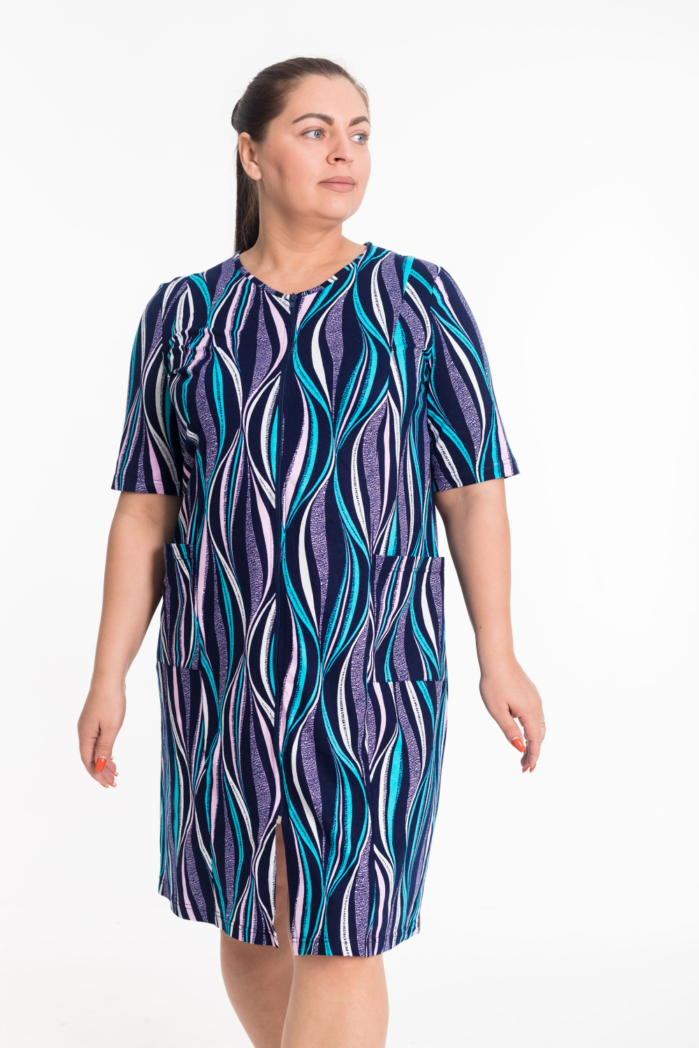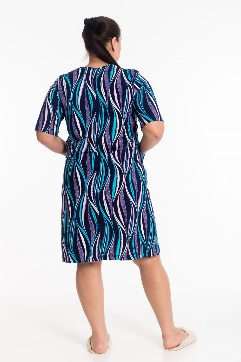 Женский халат — отличный выбор для домашнего отдыха. Он изготовлен из мягкого и комфортного хлопкового полотна с набивным рисунком, что придаёт изделию стильный вид. Халат застёгивается на молнию спереди, что обеспечивает удобство при надевании. Такой халат идеально подойдёт для повседневной носки дома.