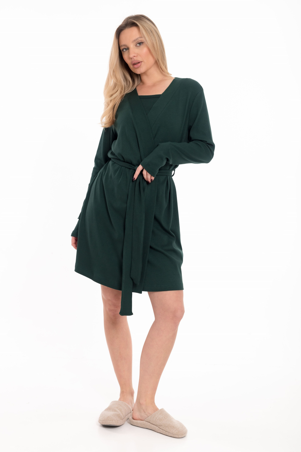 Женский халат выполнен из мягкого кашкорсе-модала в спокойном однотонном цвете. Модель с длинным рукавом и удобным запахом обеспечивает уют и комфорт. По борту полочки проходит аккуратная притачная планка, а в боковых швах расположены шлёвки, через которые продет завязывающийся пояс для идеальной посадки. Этот халат станет воплощением домашнего уюта и позволит сохранить тепло и комфорт в любую погоду.