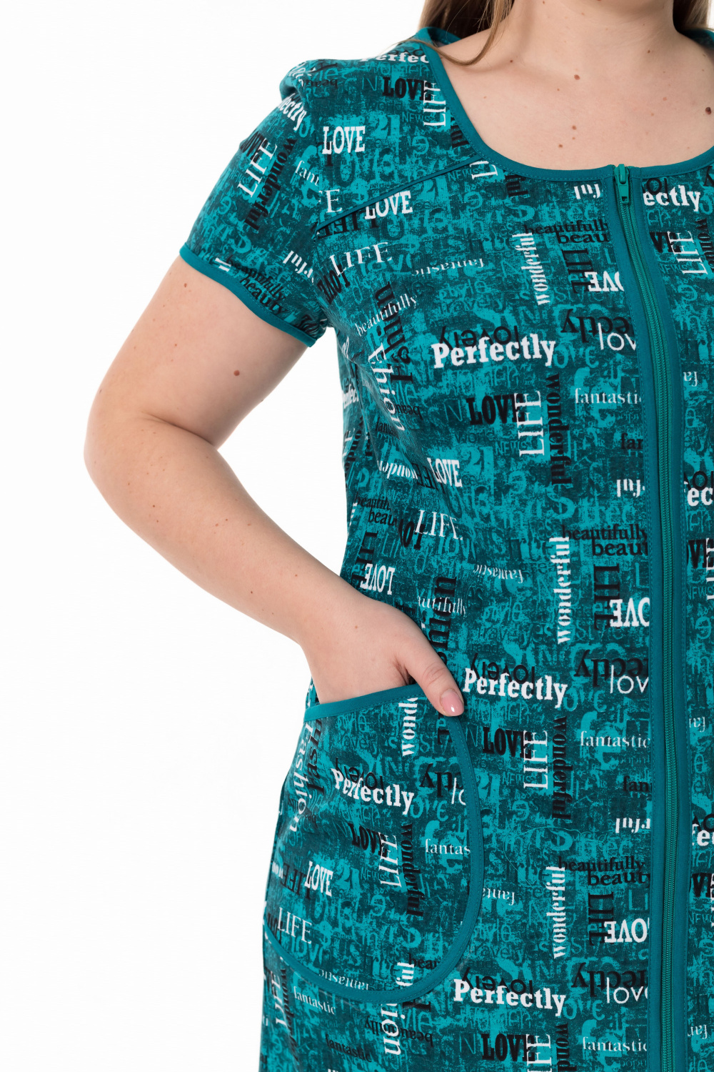 Халат выполнен из мягкого хлопка с набивным рисунком и станет комфортным вариантом для домашнего отдыха и повседневной носки. Модель с коротким втачным рукавом застёгивается на молнию, обеспечивая лёгкость и практичность при надевании. Спереди расположены накладные карманы, а аккуратная отделочная бейка по горловине, борту, низу изделия и рукавов придаёт халату аккуратный и завершённый вид.