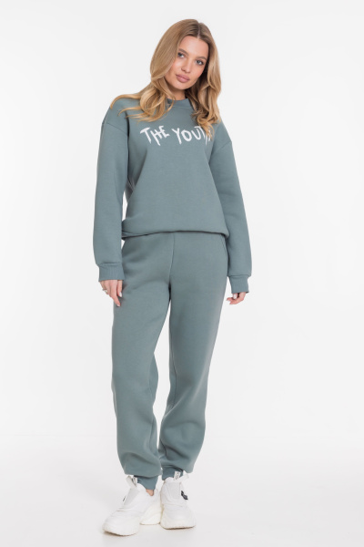 Женский костюм из футера голубого цвета — отличный выбор для прохладной погоды. Тёплый материал обеспечивает комфорт, а спущенная линия плеча, манжеты на рукавах и штанинах, круглая горловина гарантируют свободу движений. Костюм станет незаменимой вещью в вашем гардеробе.