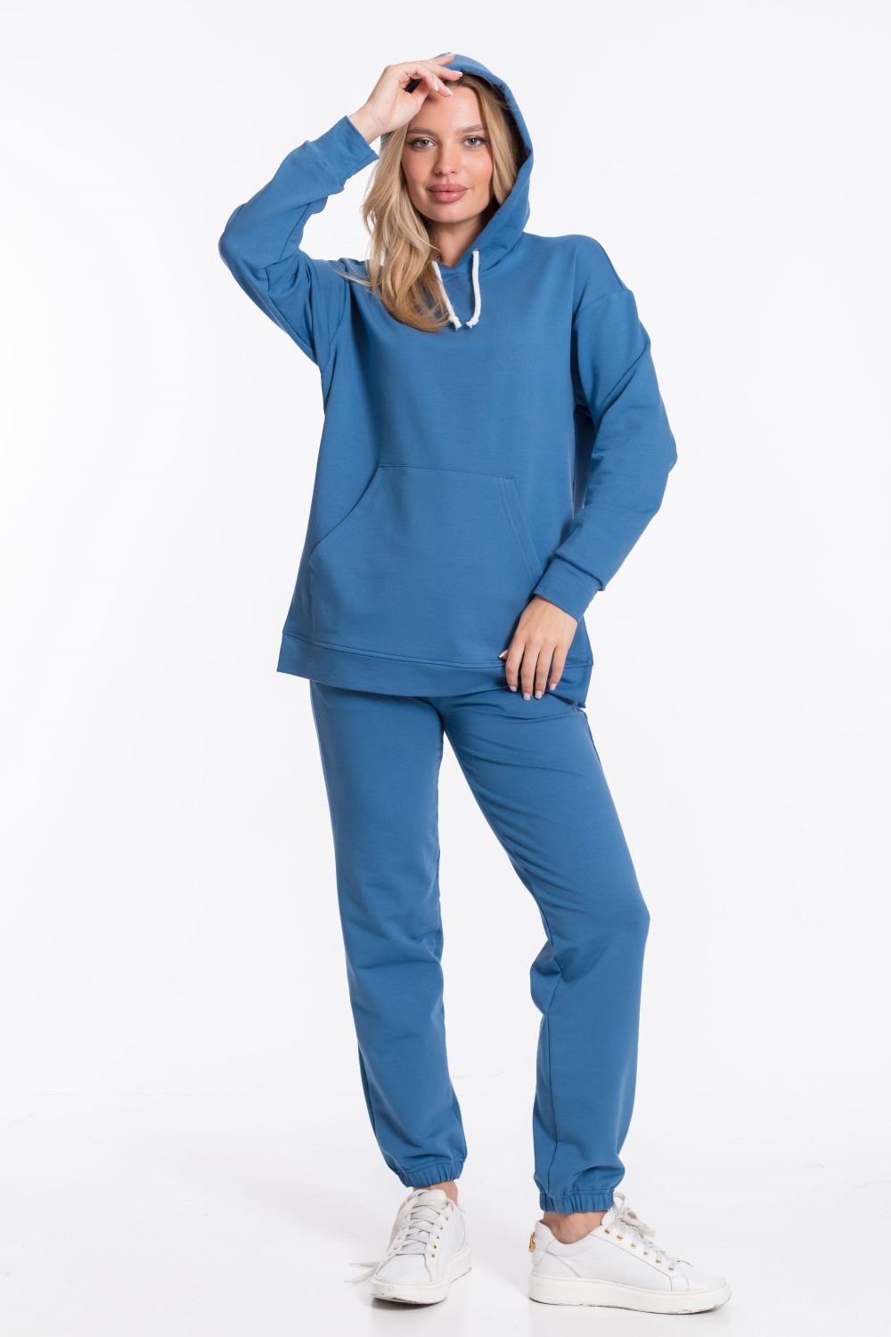 Женский костюм — отличный выбор для повседневного гардероба. Он состоит из толстовки и брюк, выполненных из однотонного футера петли с лайкрой.
