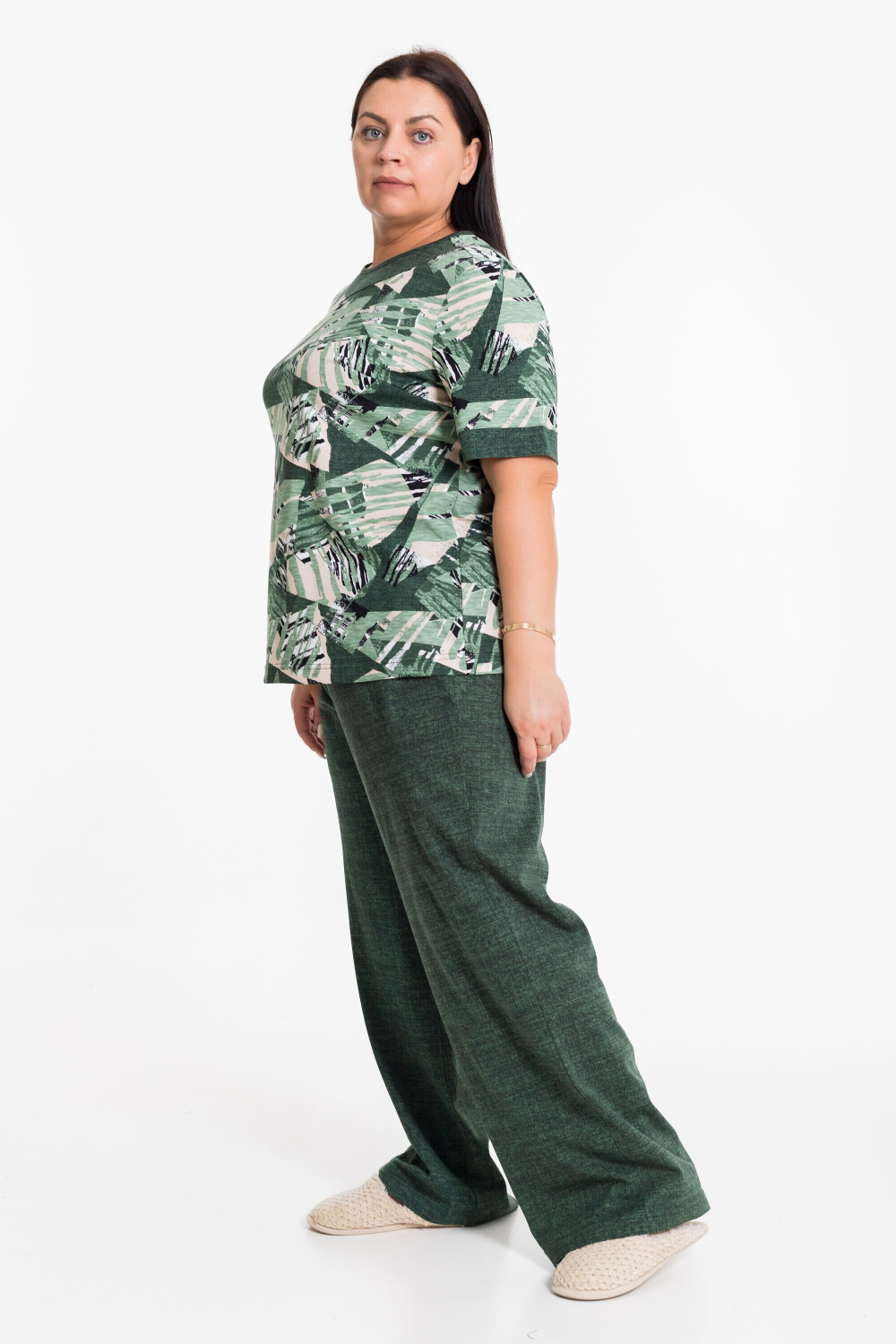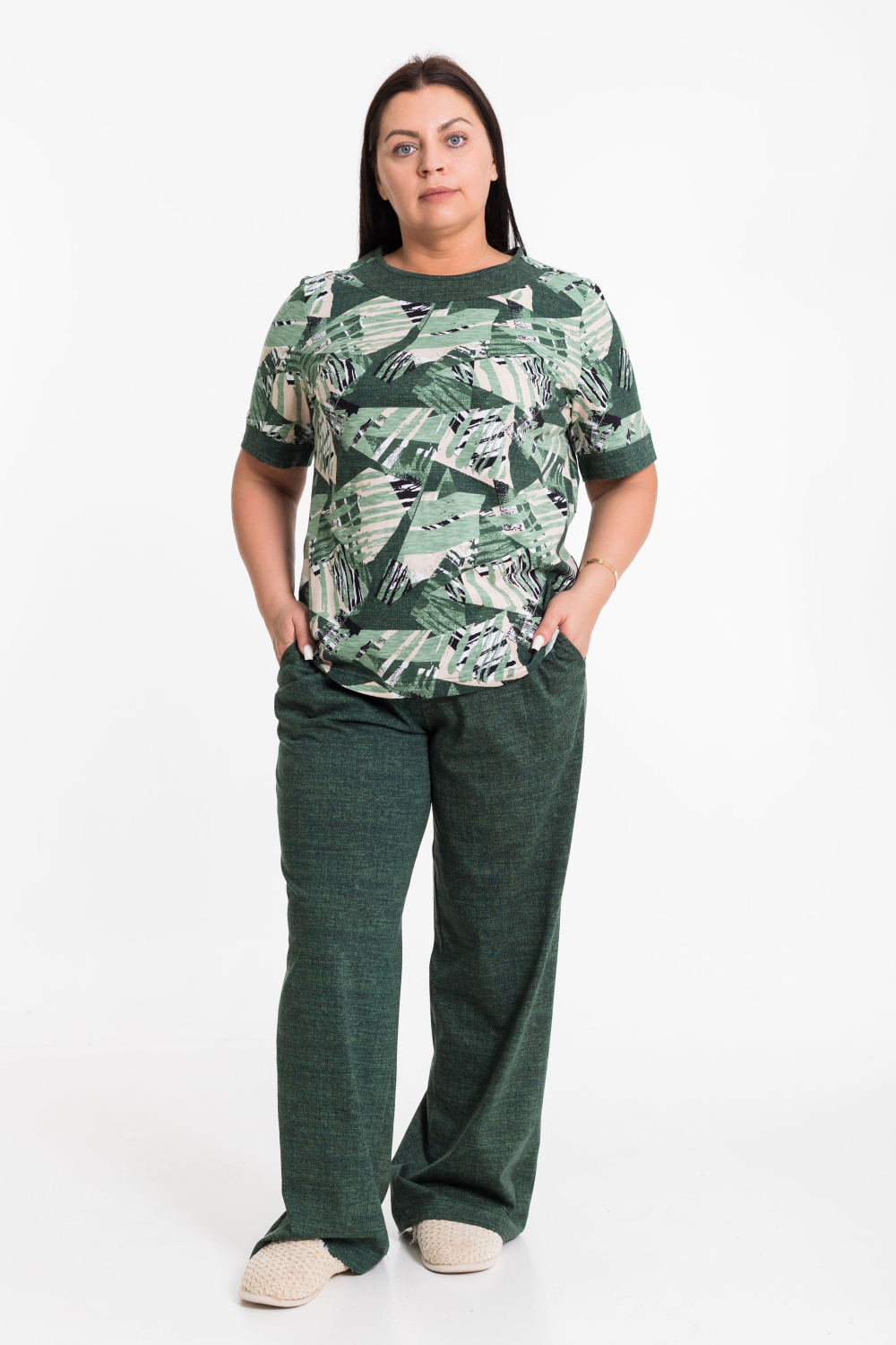 Женский костюм — отличный выбор для повседневной носки. Он выполнен из практичного и лёгкого хлопкового полотна. Брюки с поясом на резинке обеспечивают комфортную посадку и не сковывают движения. Наличие карманов делает модель более функциональной. Футболка с коротким рукавом и круглым вырезом горловины придаёт изделию стильный вид и обеспечивает свободу движений. Такой костюм идеально подойдёт для прогулок, неформальных встреч или отдыха. Он выполнен из качественного материала, который хорошо пропускает воздух и обеспечивает комфорт при движении, а также не требует особого ухода.
