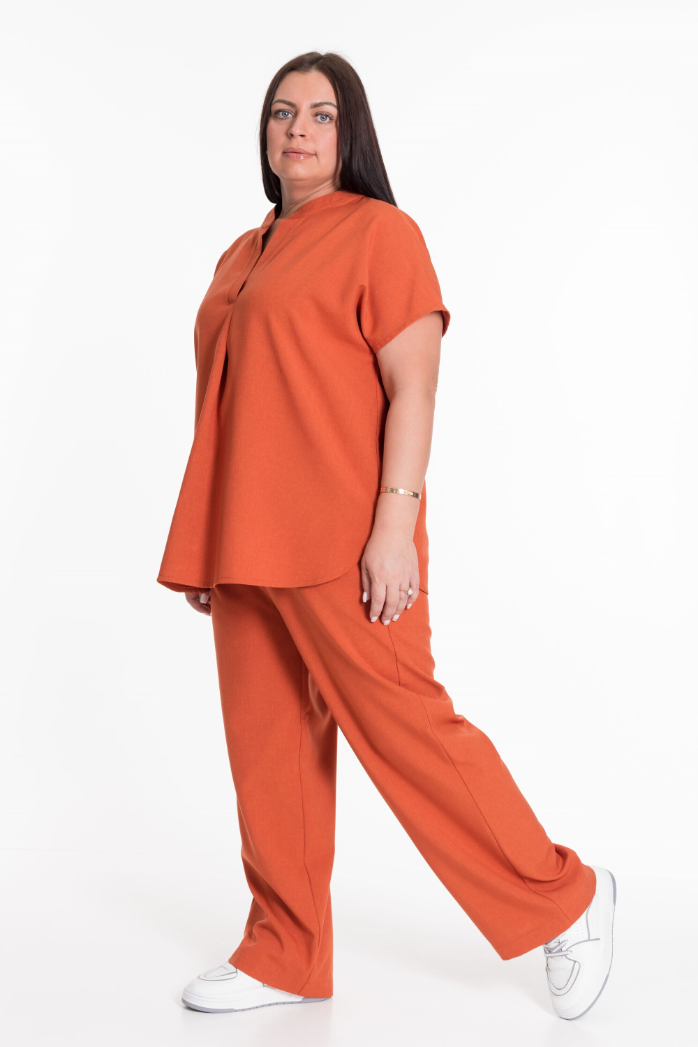 Женский костюм — отличный выбор для повседневной носки. Он выполнен из практичного и лёгкого полотна, имитирующего лён.