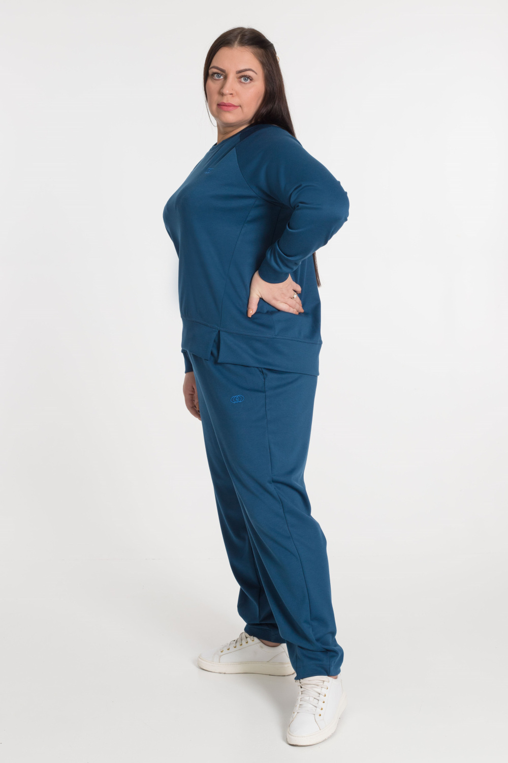 Брюки - свободные вверху и зауженные  к низу, боковые карманы, притачной пояс.
