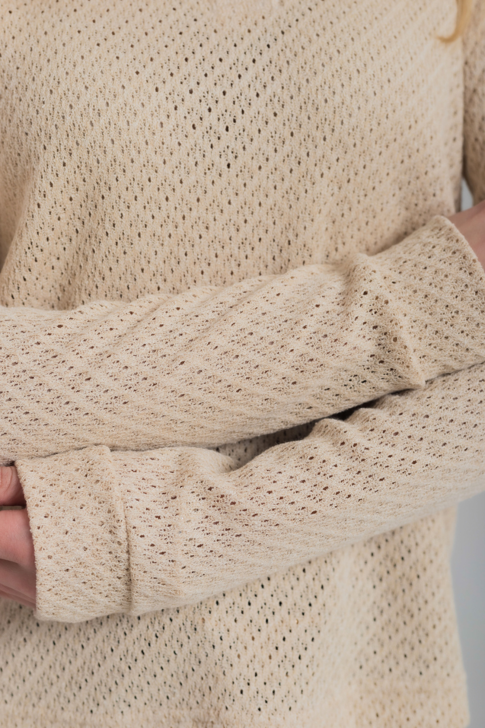 Длинный рукав на манжете, воротник с застёжкой на две пуговицы.
